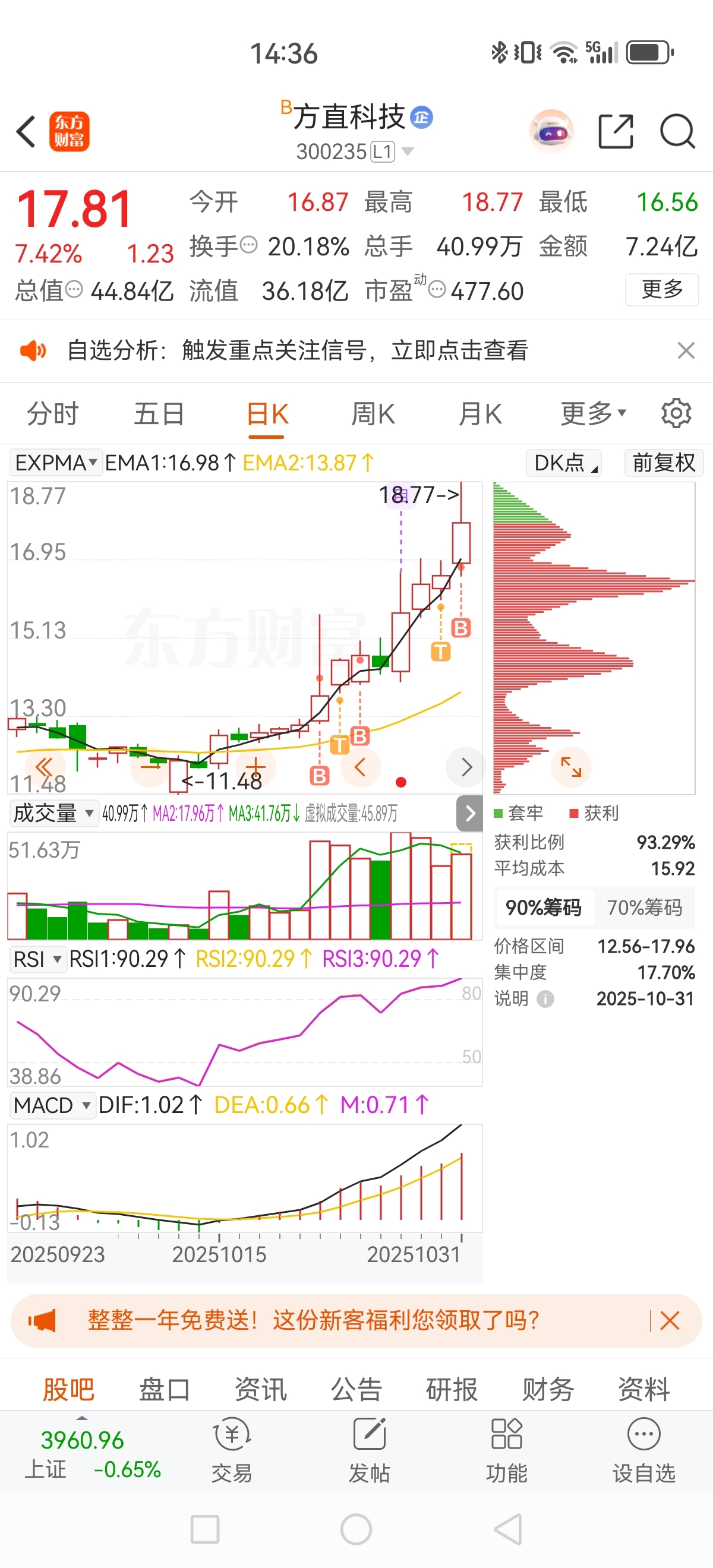 $方直科技(SZ300235)$ 温和放量,风险何来?