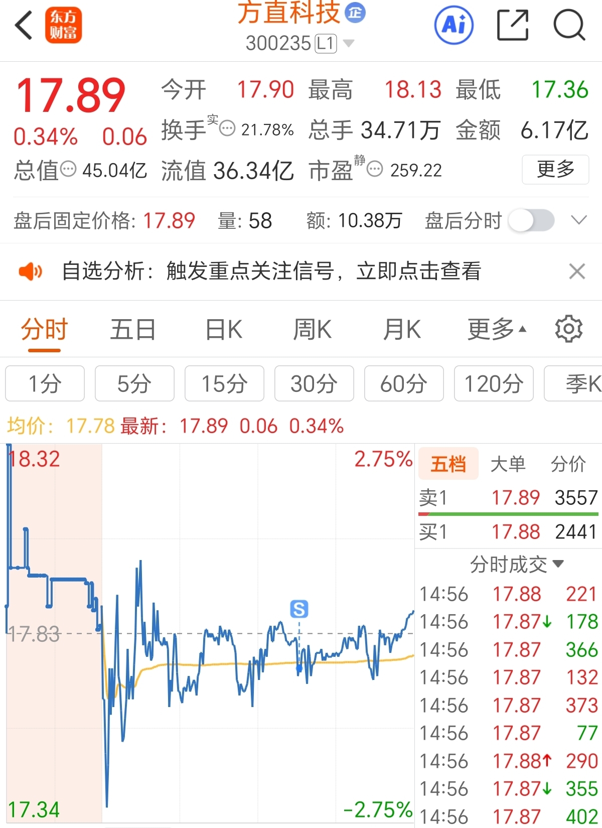 $方直科技(SZ300235)$ 流了一半没出,没想到高位减持