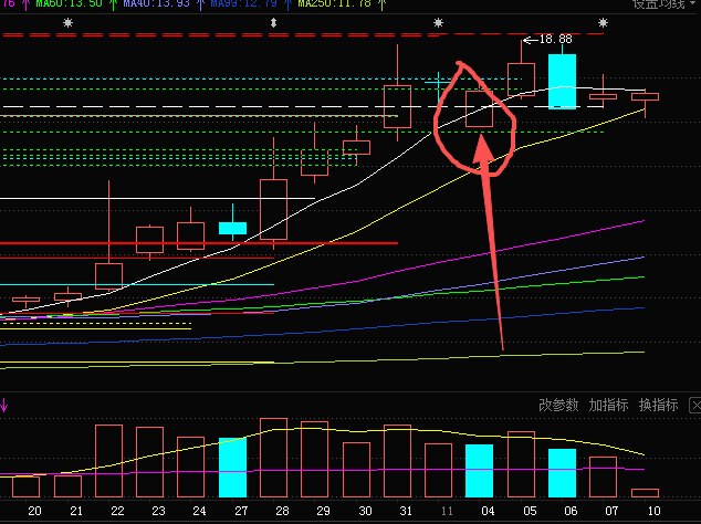 保守的做法,今天比上周五新低,走;激进的做法:盯住11.4日的K ,这天不砸破,,开盘16.9,收盘17.71;就能继续涨。今天最低17.09,没有跌破4日的实体底部16.9,很好。实体顶部17.71,今天收盘能站稳,后续继续站稳17.71,3天,那就大概率有后续。否则,就要走。