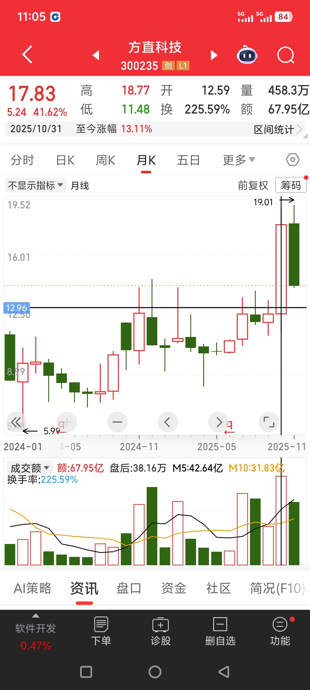 $方直科技(SZ300235)$ 上个月涨了41% 目前看涨幅还是有点大