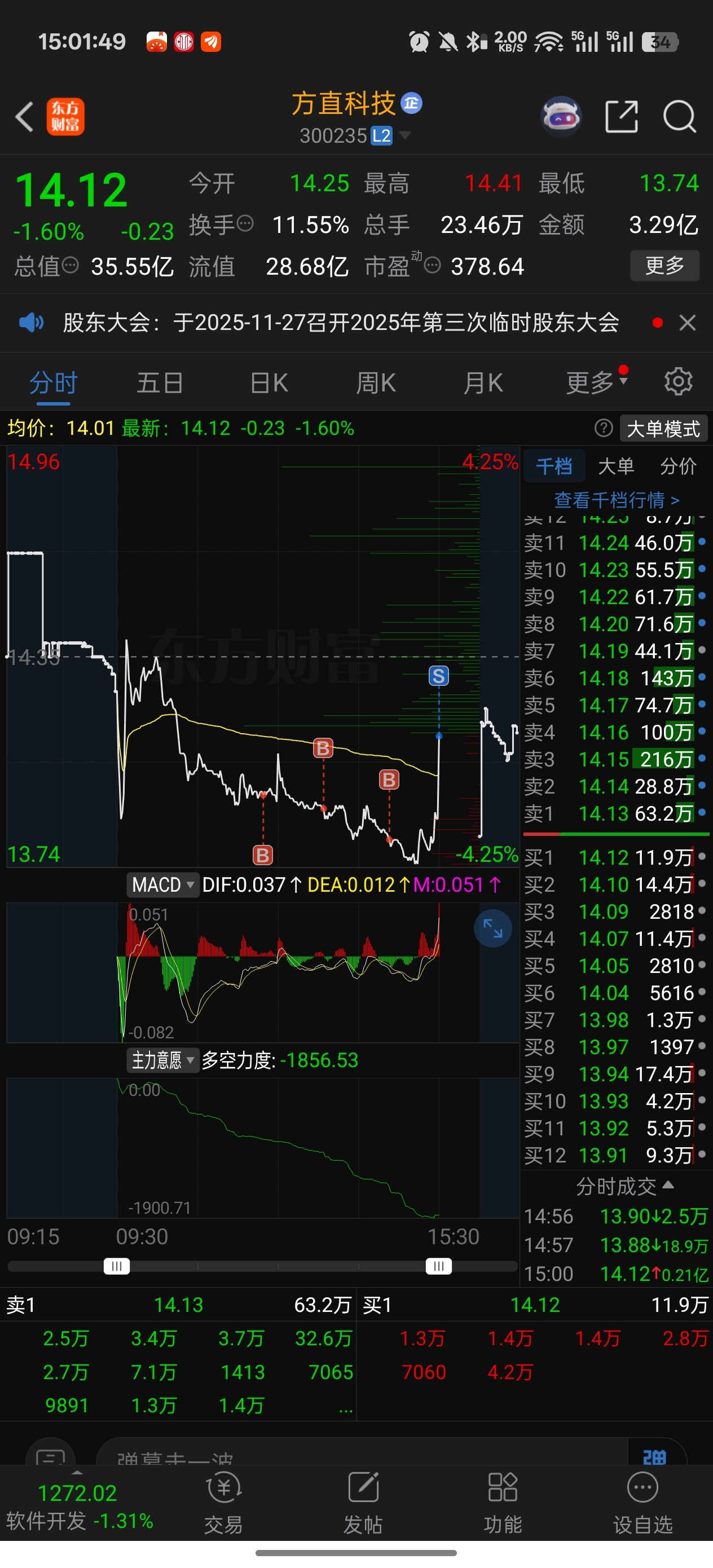 $方直科技(SZ300235)$ 怎么天天拉尾盘的