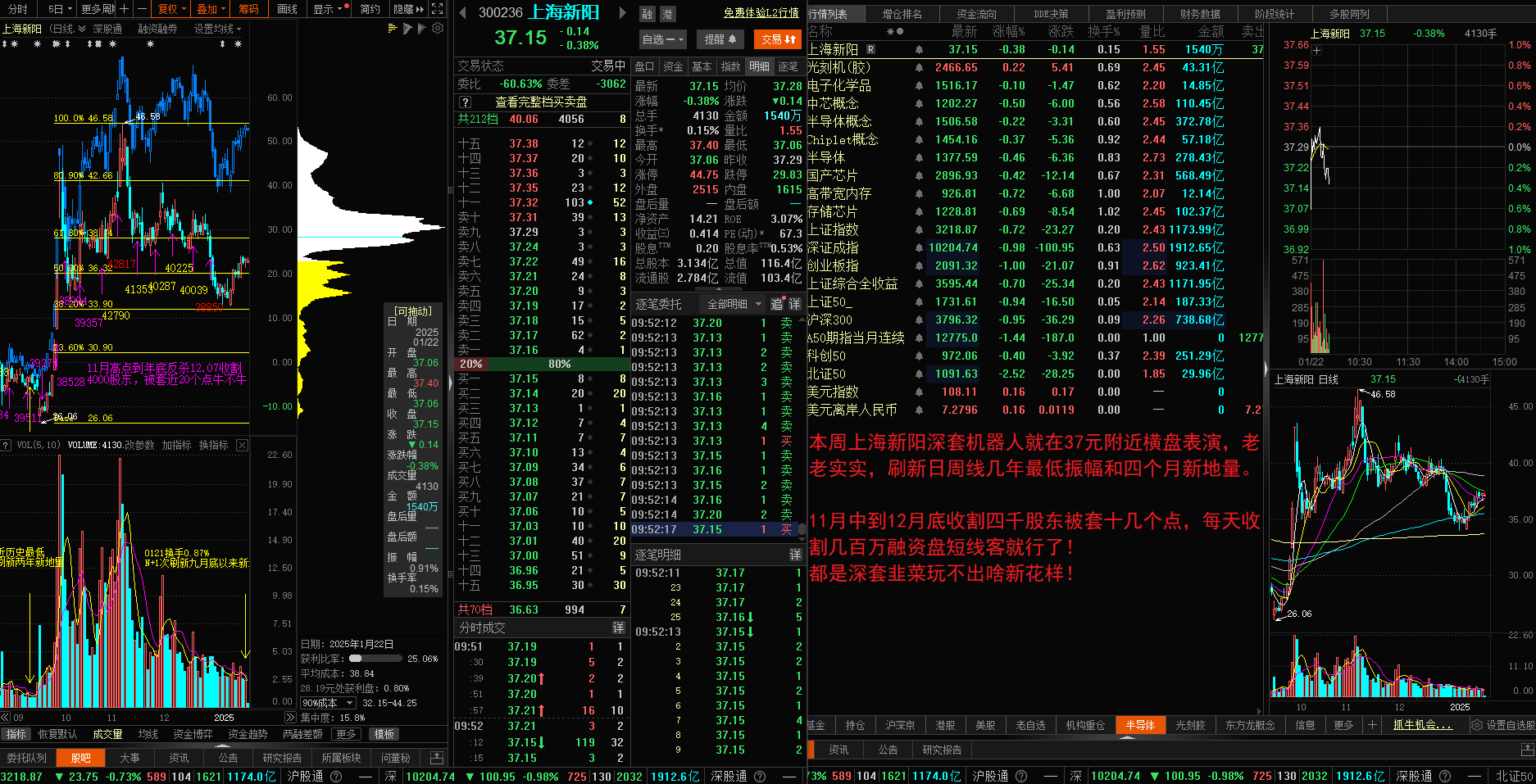 本周上海新阳深套机器人就在37元附近横盘表演,老老实实,刷新日周线几年最低振幅和