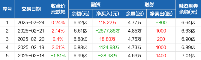 上海新阳:融资净买入118.22万元,融资余额6.62亿元(02-24)
