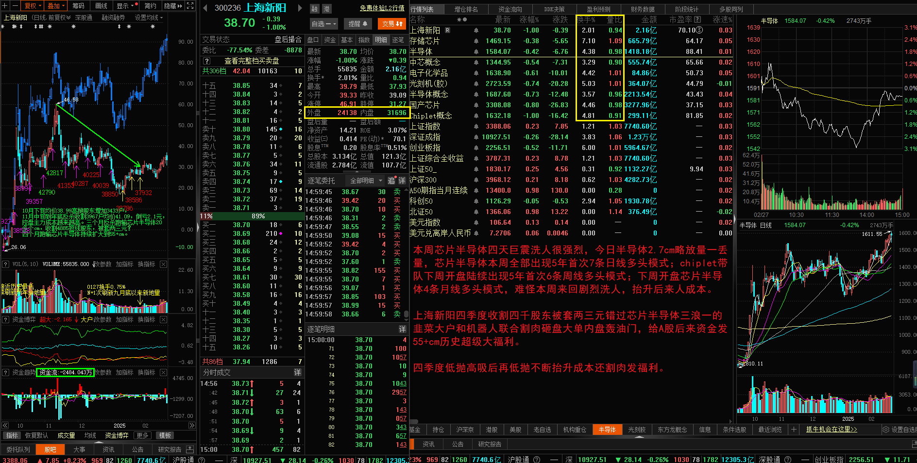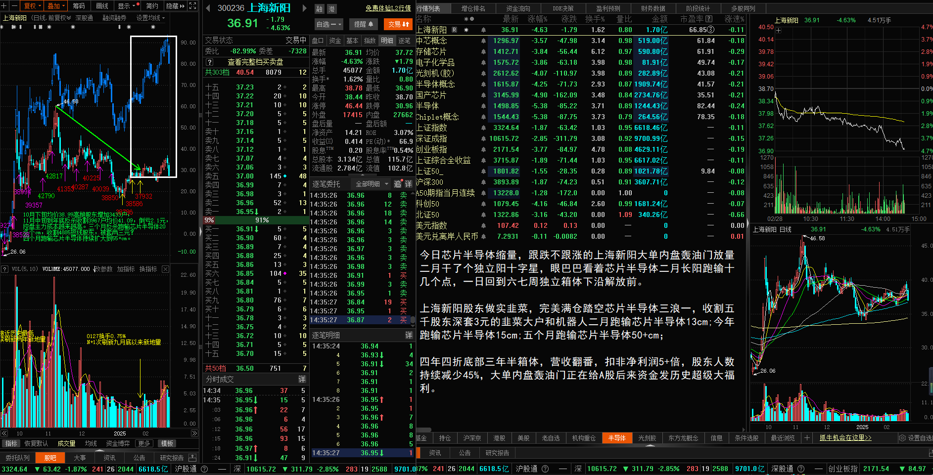 今日芯片半导体缩量,跟跌不跟涨的上海新阳大单内盘轰油门放量二月干了个独立阳十字星