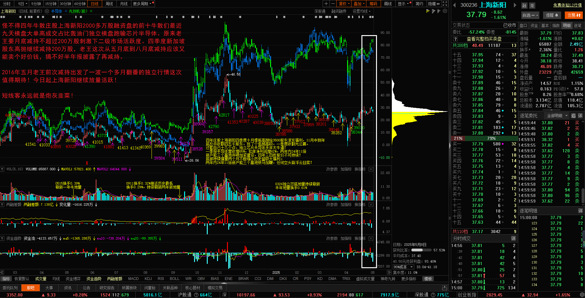 今日五月节后第二周收官,芯片半导体五月已经长阳连涨两周。四年牛散庄股上海新阳霸王庄怪不得大单内盘连轰两周独立芯片半导体跑输六七个点!四五坐庄必须和老王连通一气,当然也要配合得比2016更好!