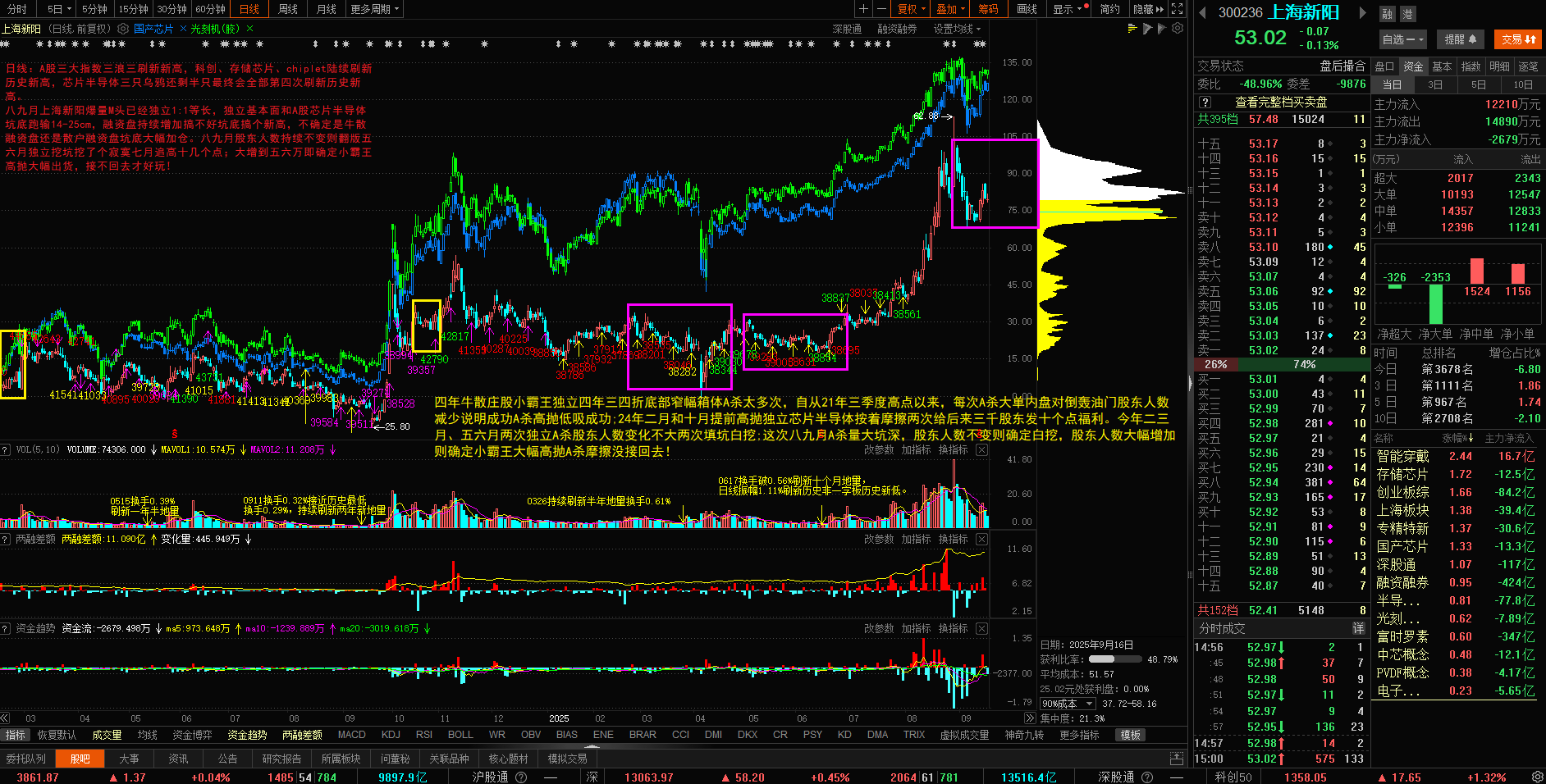 八九月高位M头后1:1等长独立大幅换人大幅波动挖坑5天挖坑8天摩擦跑输A股芯片半导体扩大到14-25cm,这次玩最大!股东人数变化不详。