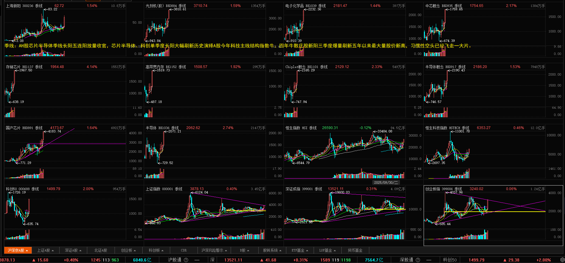 节前芯片半导体科创集体历史新高抱团越来越强烈,结构指数牛继续三季报辉煌!