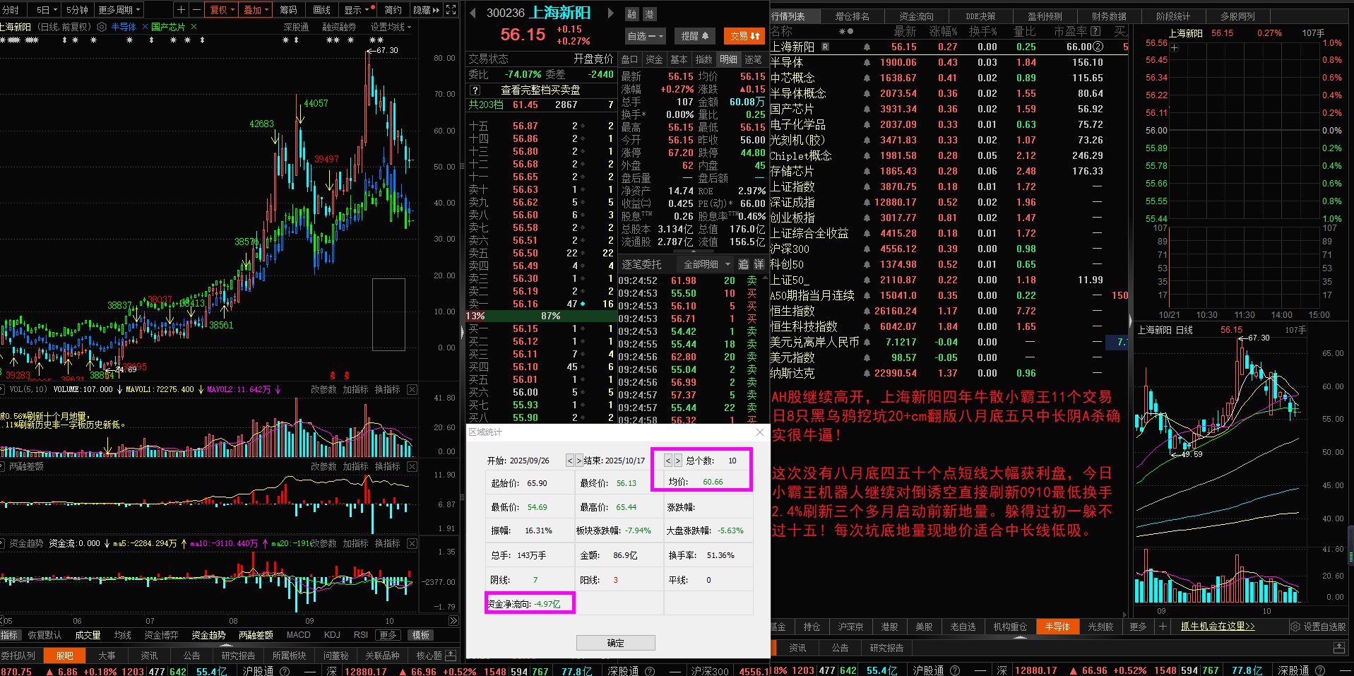 第一个半小时收官AH股大涨,上海新阳小霸王4个千手单一锅端后又挂了3个1500千