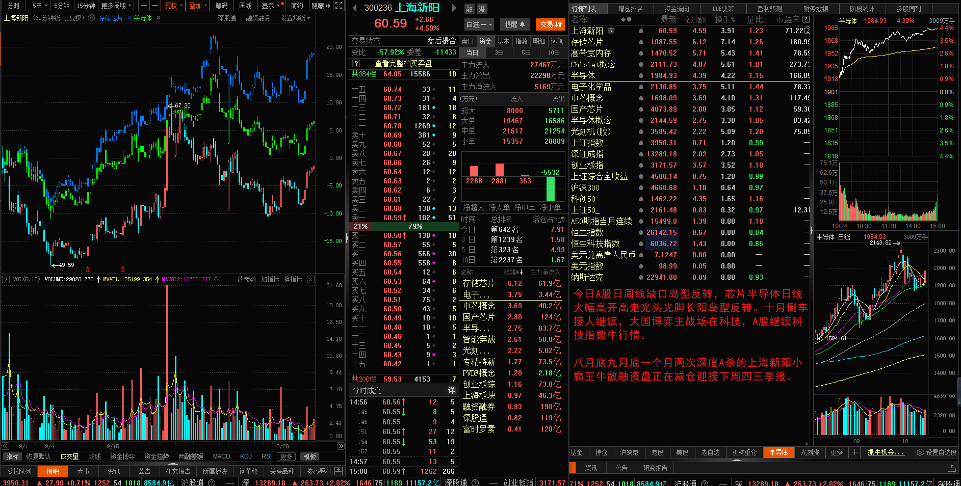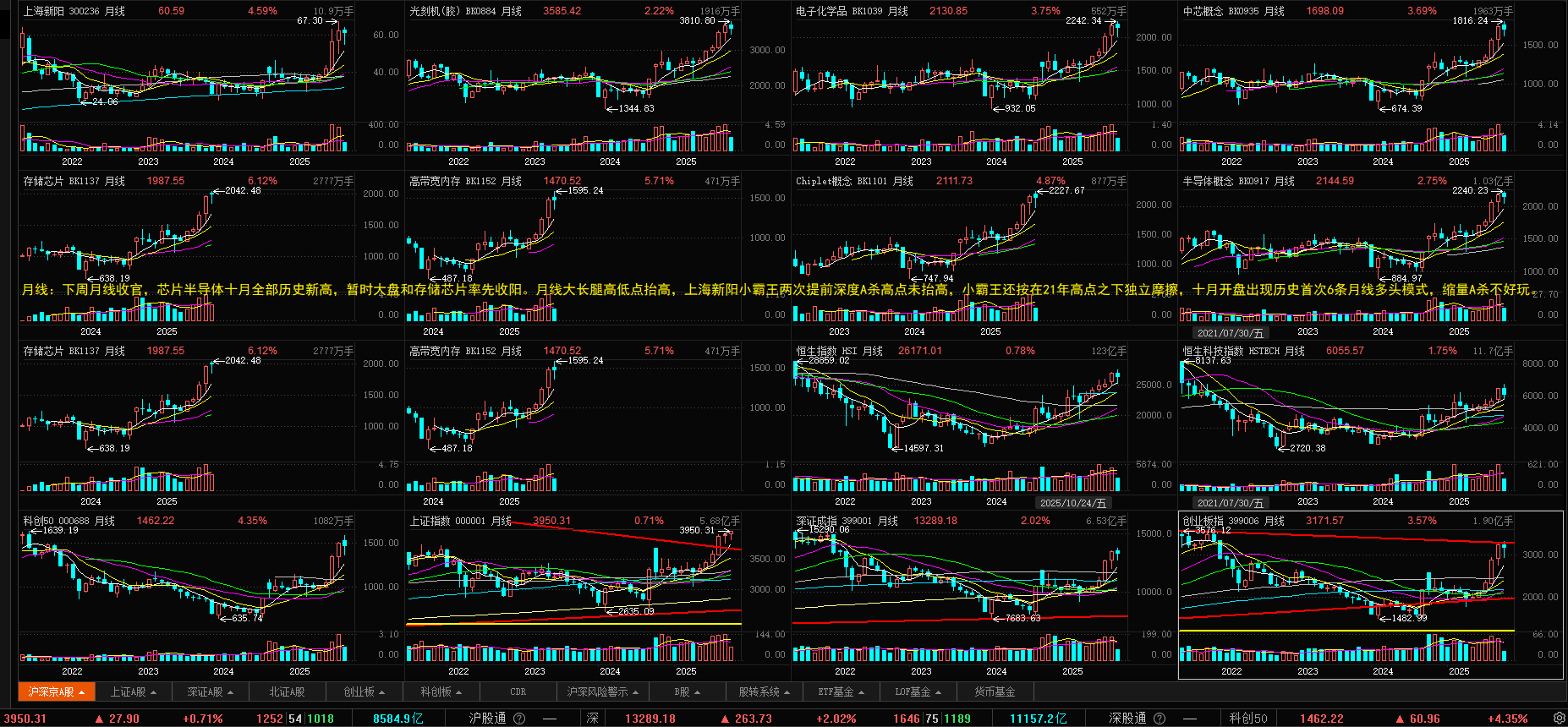 今日A股日周线缺口岛型反转,芯片半导体日线大幅高开高走光头光脚长阳岛型反转。十月