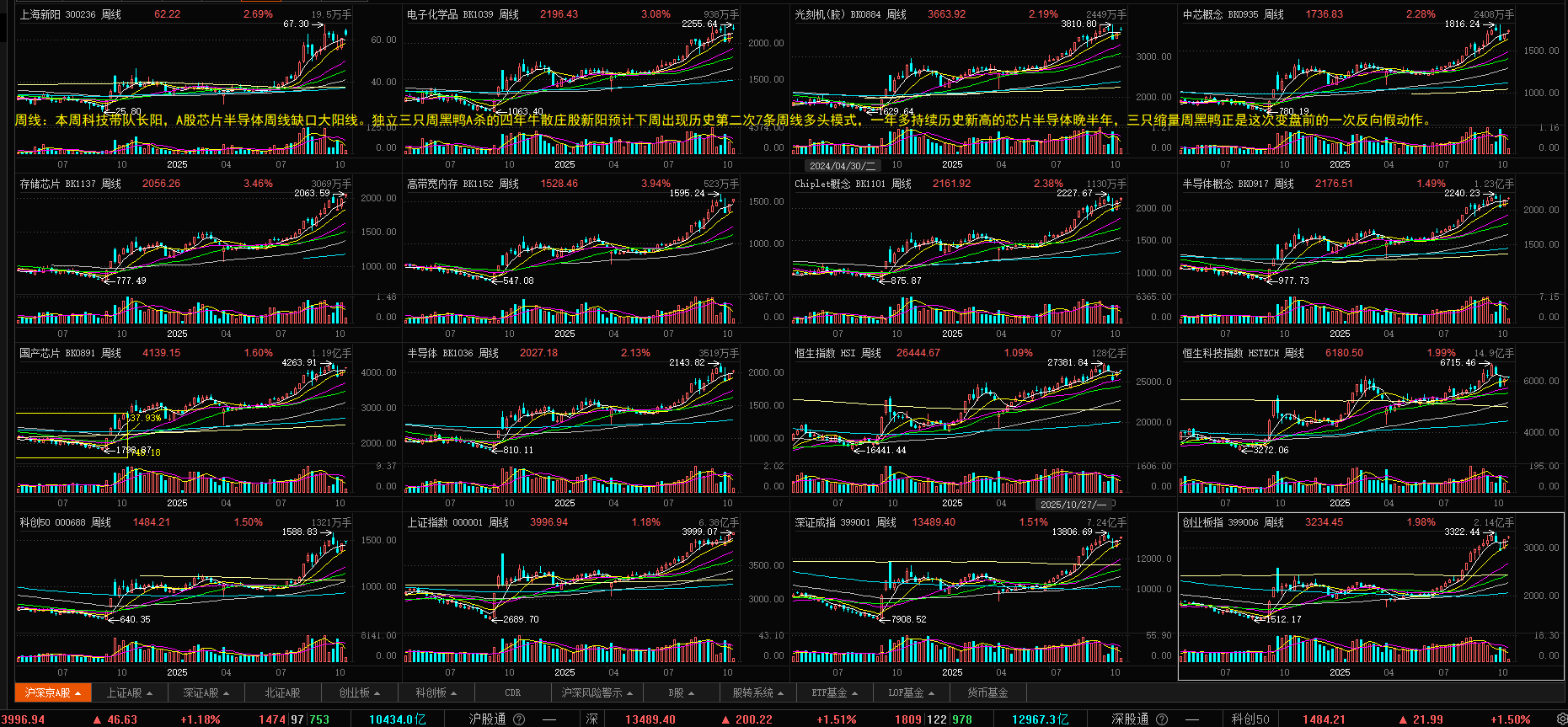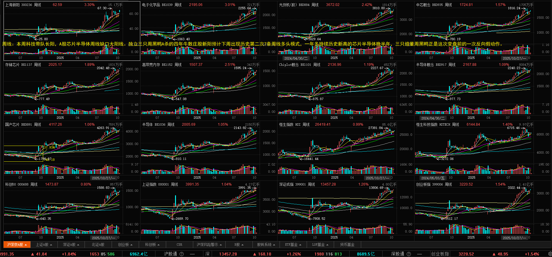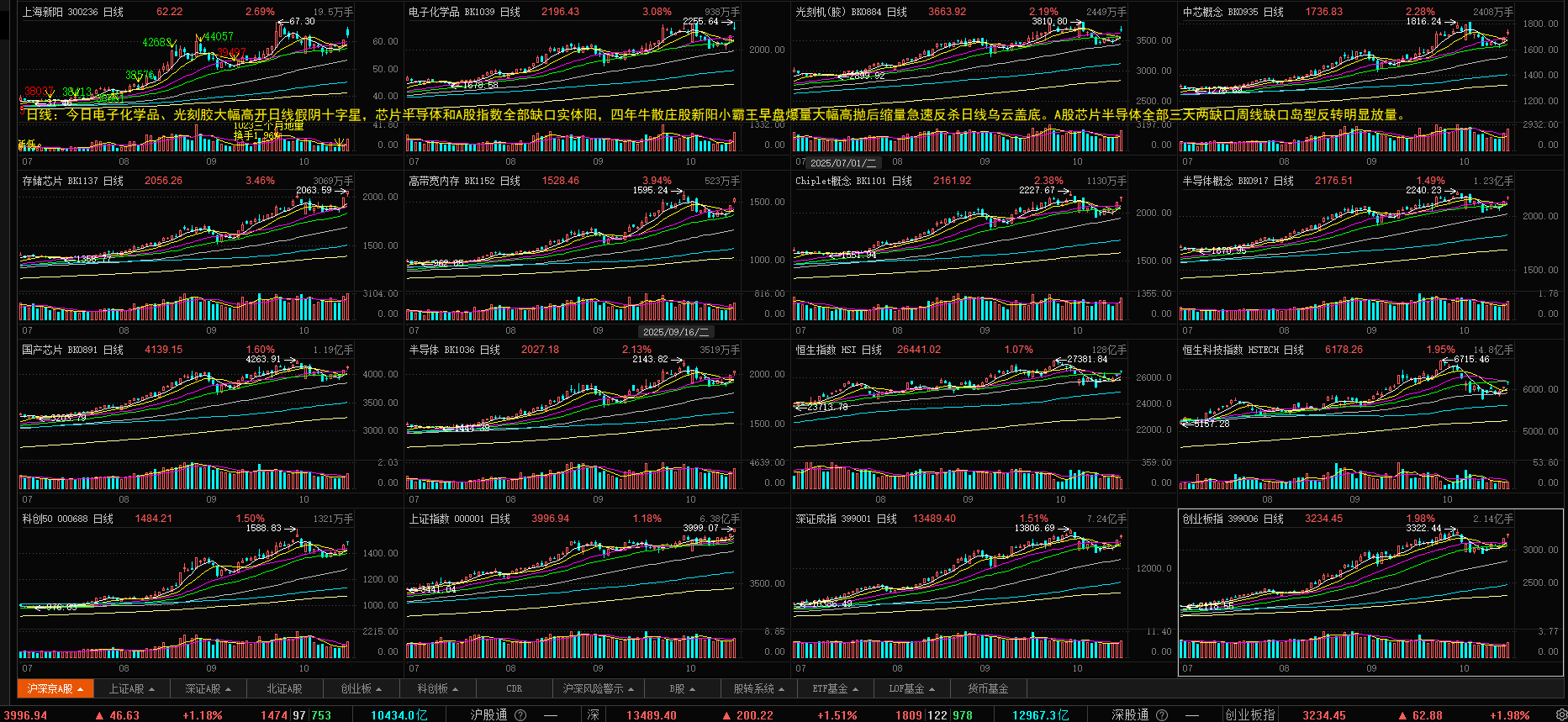 今日科技带队A股芯片半导体日周线缺口大阳线翻版九月初加速填坑,大盘明日上4000