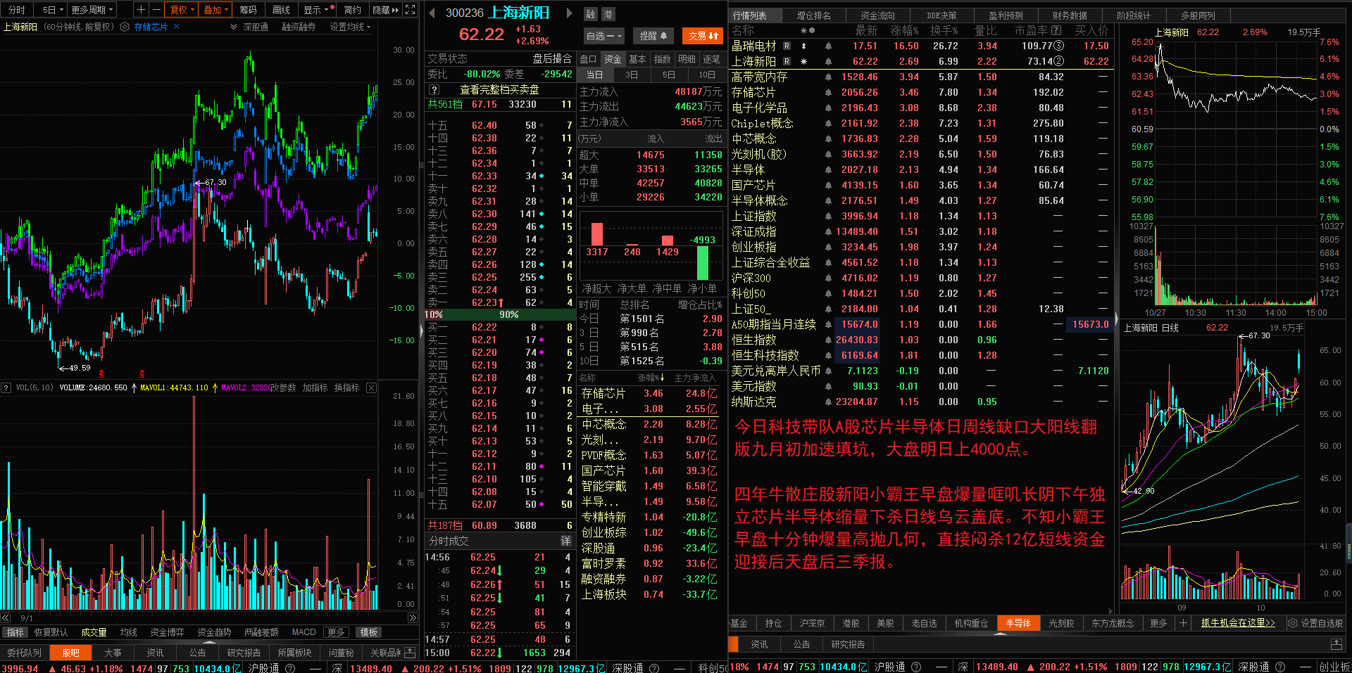 今日科技带队A股芯片半导体日周线缺口大阳线翻版九月初加速填坑,大盘明日上4000点。
