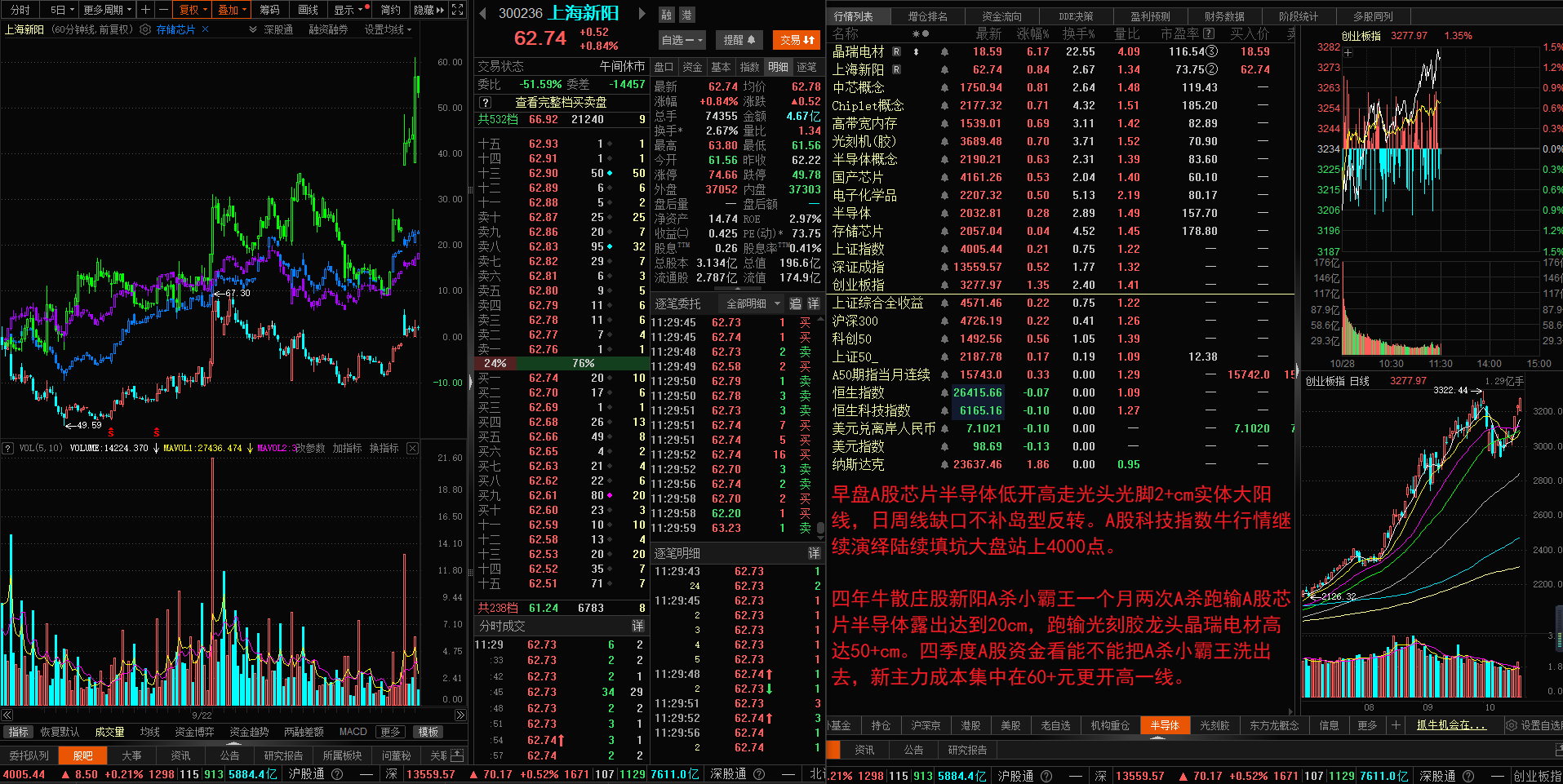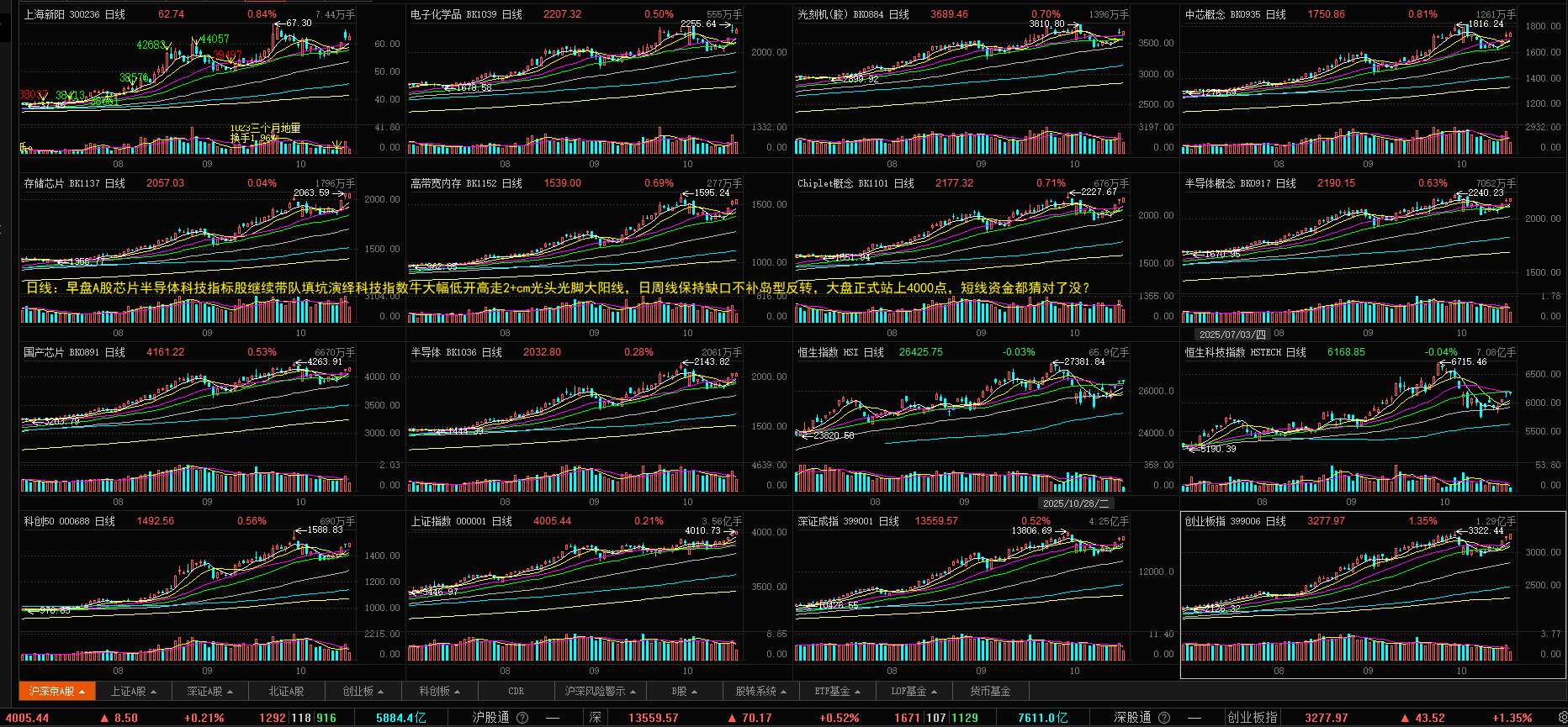 早盘A股芯片半导体低开高走光头光脚2+cm实体大阳线,日周线缺口不补岛型反转。A