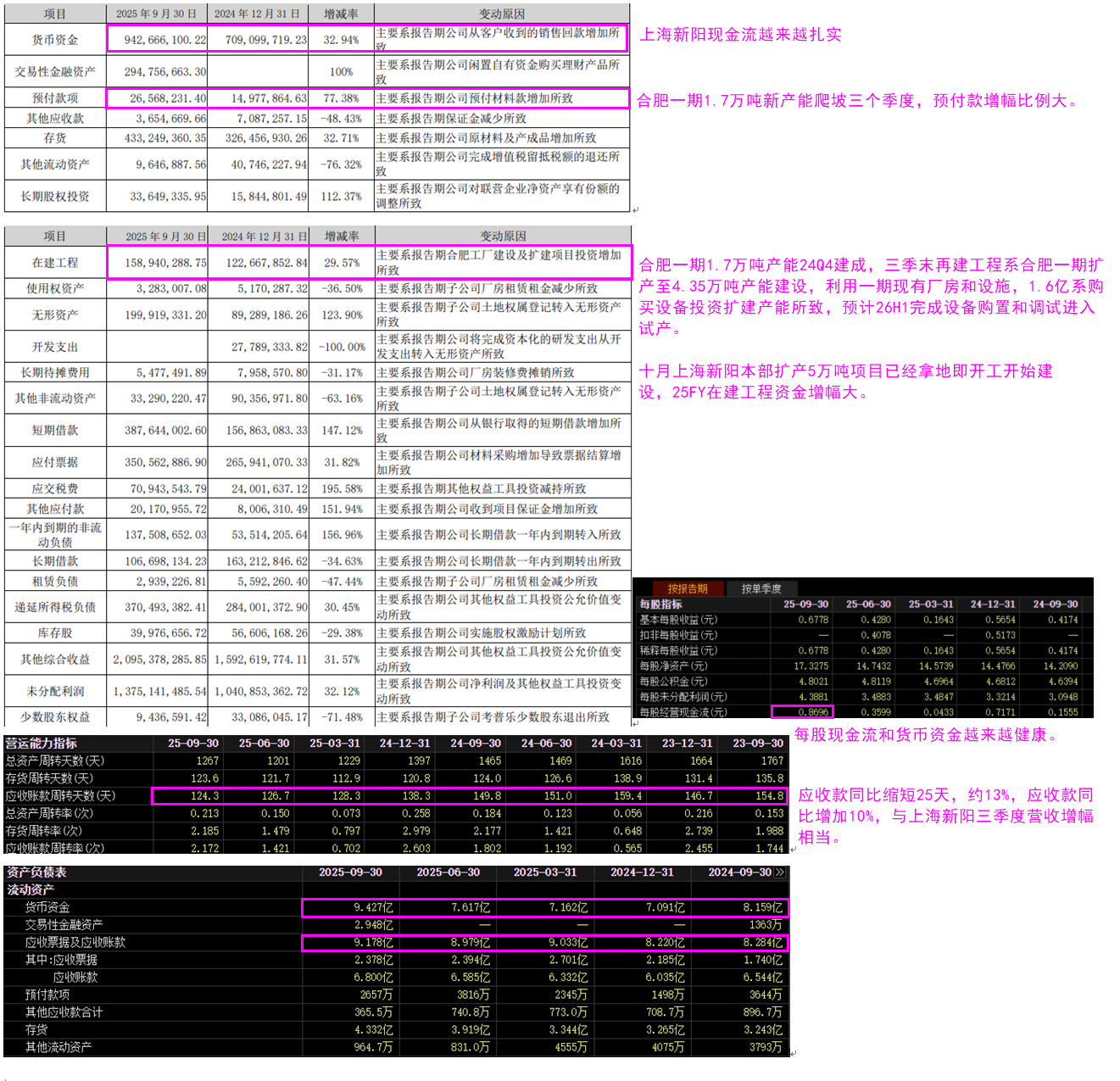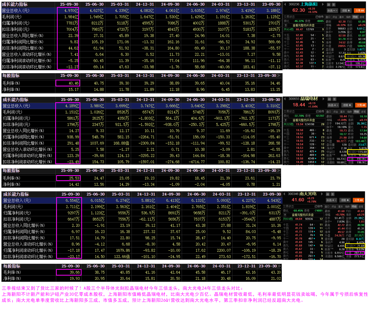 上海新阳不计新产能和沪硅产业30亿零成本股权,上海新阳市值略低晶瑞电材,比南大光电少百亿。晶瑞电材营收最低,毛利率最低明显花钱卖吆喝,今年属于亏损后恢复性成长;南大光电单季度营收比上海新阳多三成,市值多五成,预计上海新阳26Q1营收达到南大光电水平,第三季扣非净利润已经反超南大光电。