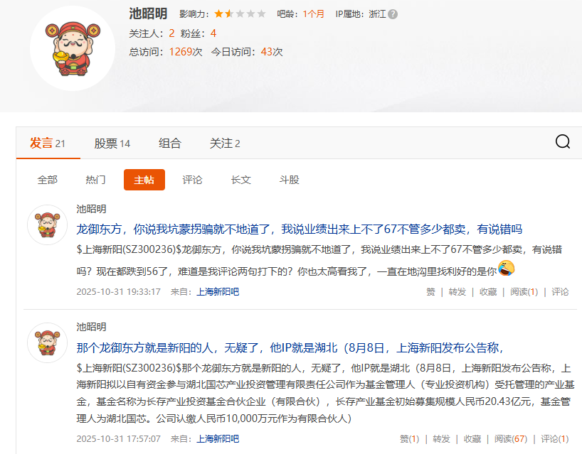 这货马甲才一个月,应该是大号忽悠不下去了换新小号!