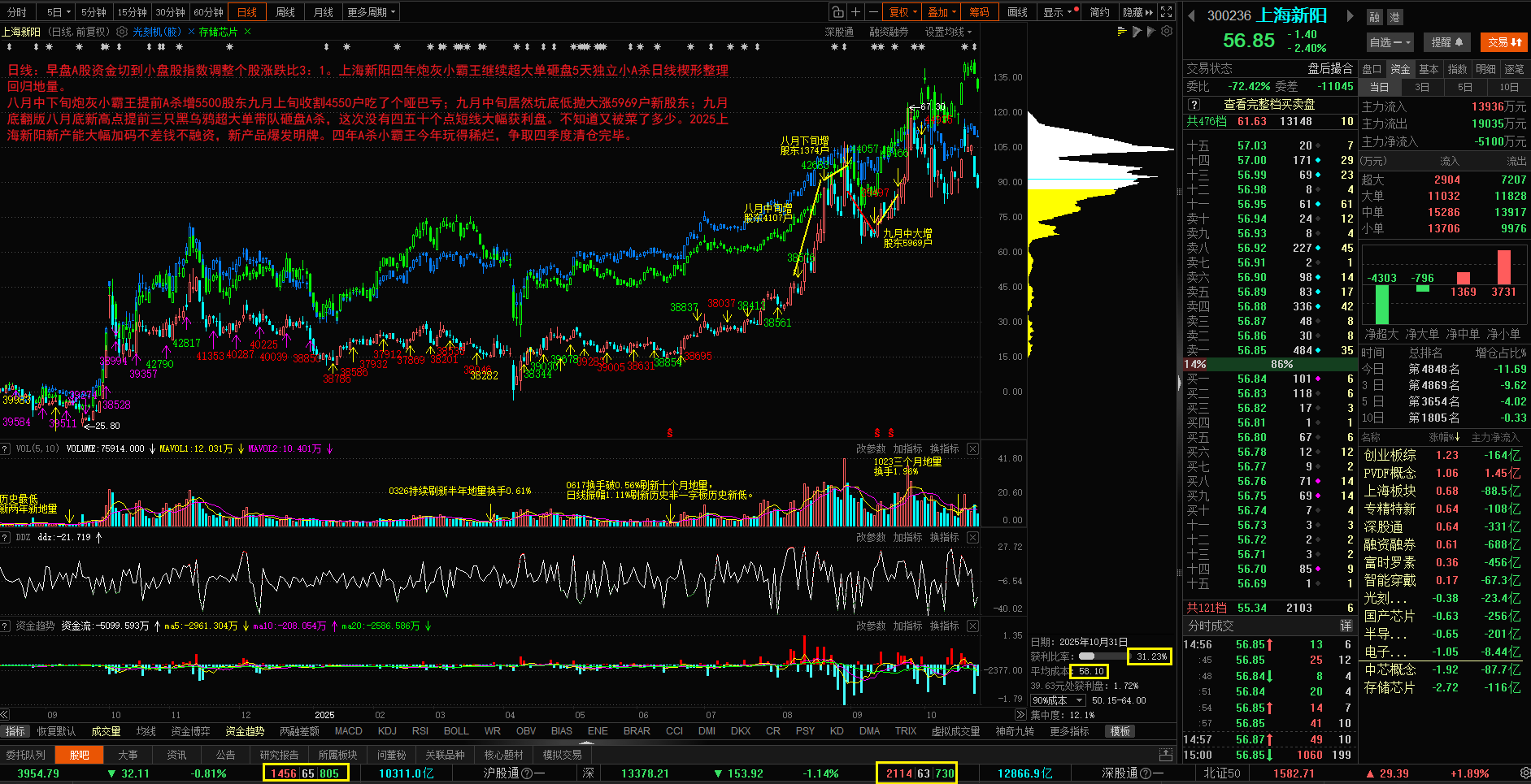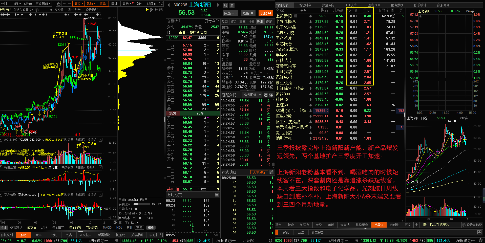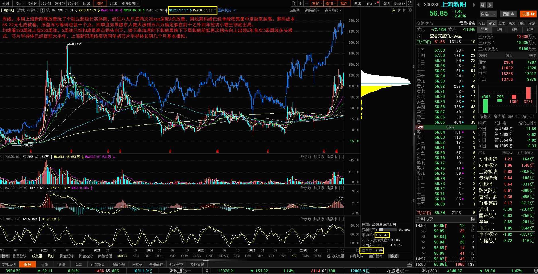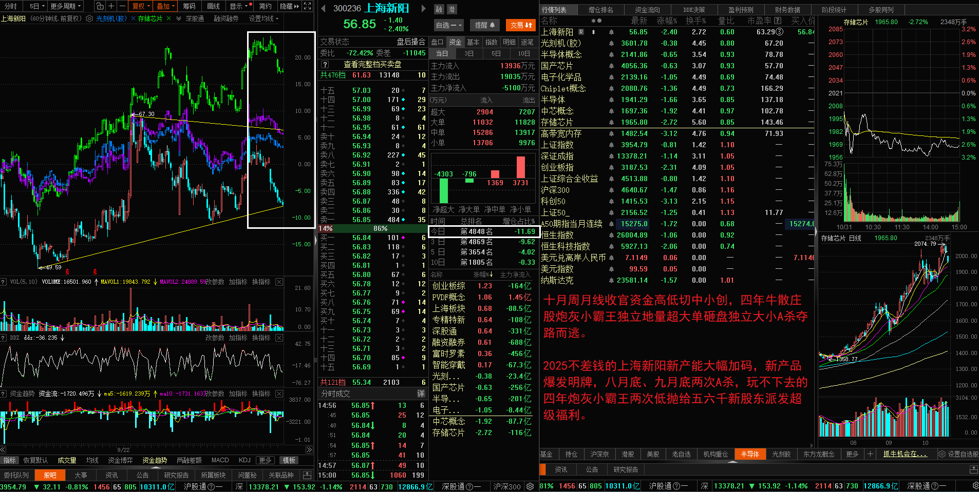 第一个小时A股芯片半导体全部补缺日周线缺口,上海新阳小霸王超大单9个小时断头连续砸盘破底略放量深套韭菜筹码割肉真牛逼!