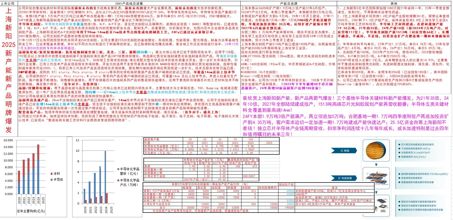 $上海新阳(SZ300236)$ @妙想 上海新阳三个基地产能扩产分别多少,各基地扩产进展如何?
