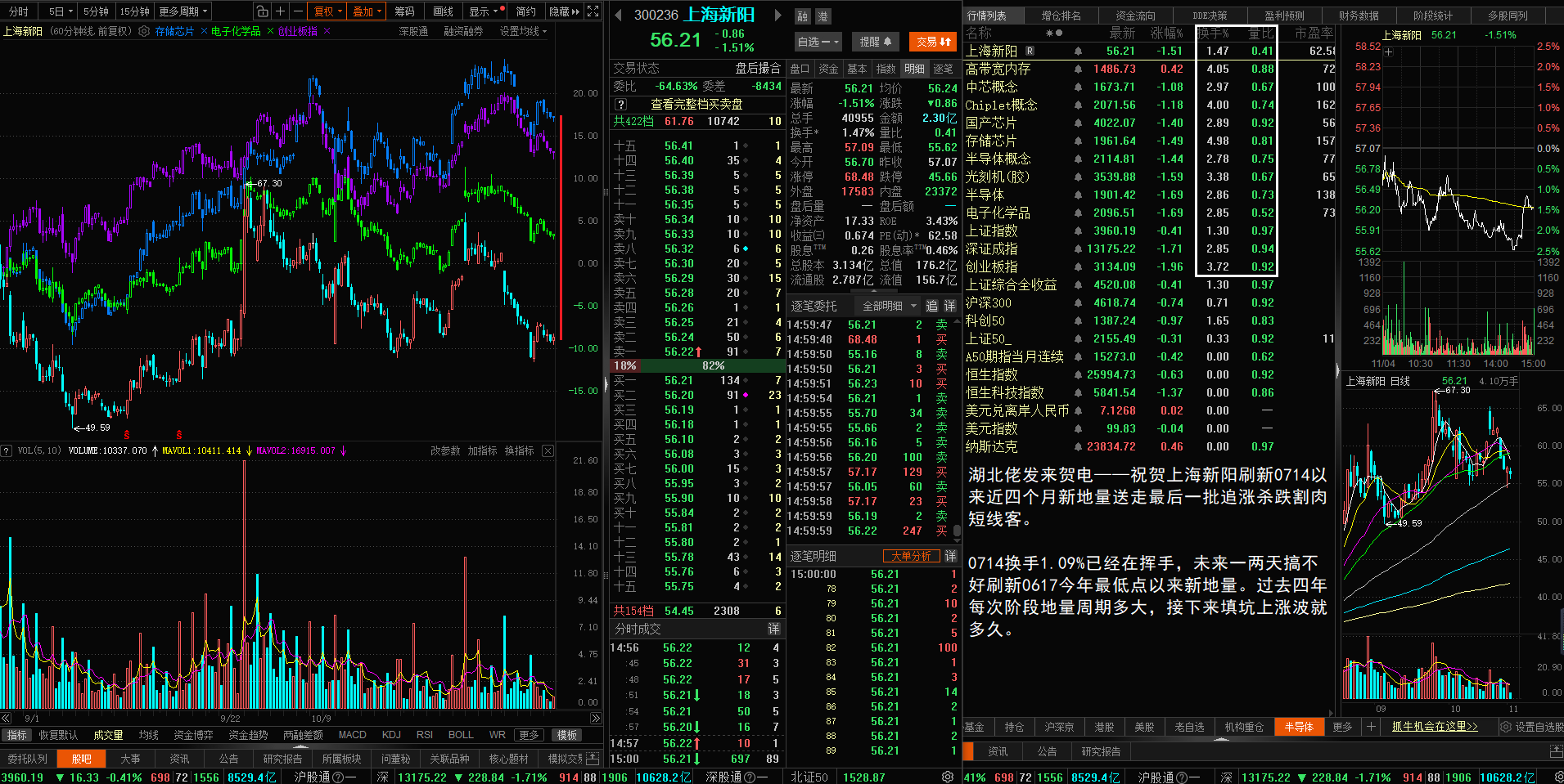 湖北佬发来贺电——祝贺上海新阳刷新0714以来近四个月新地量送走最后一批追涨杀跌