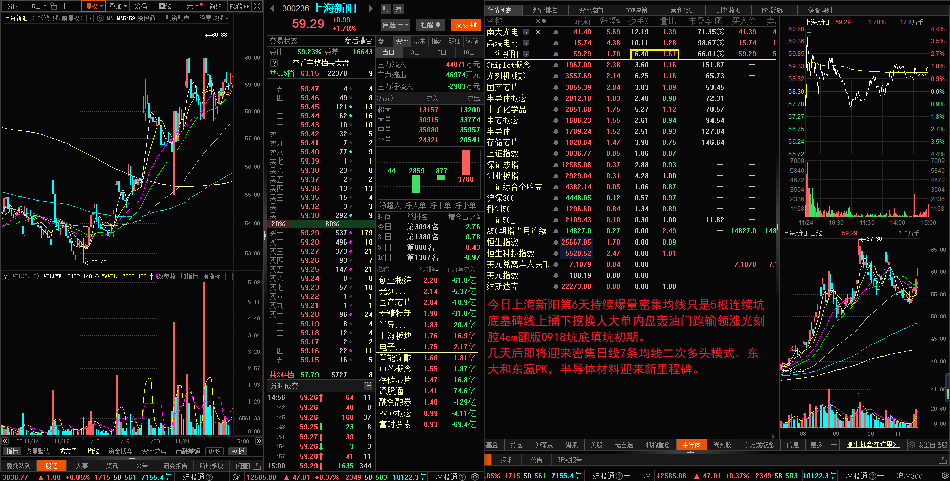 上海新阳第6天持续爆量密集均线只是5根连续坑底墓碑线上捅下挖换人大单内盘轰油门跑输领涨光刻胶4cm翻版0918坑底填坑初期。