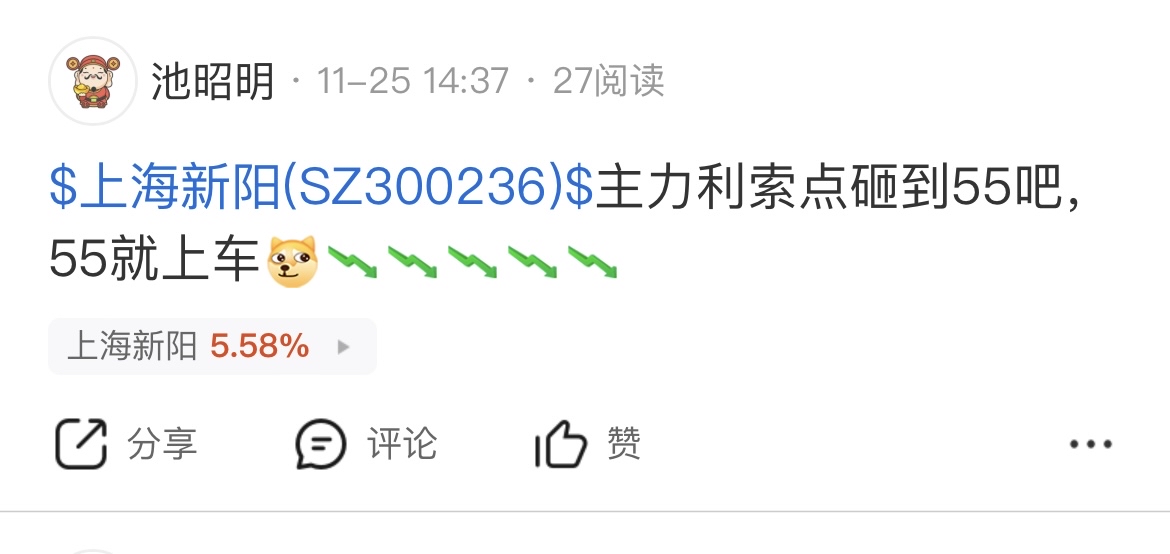 $上海新阳(SZ300236)$ 截图发出来了,我之前说跌到55就上车的,自己没操作好,别怪别人