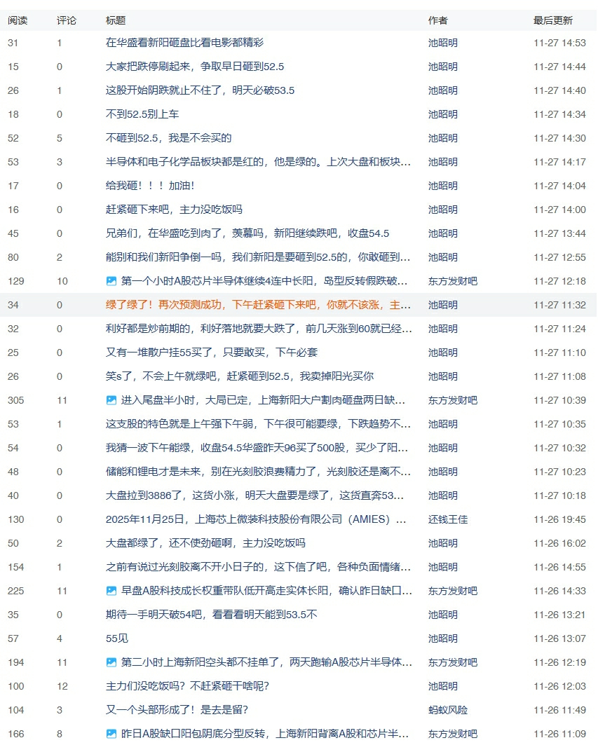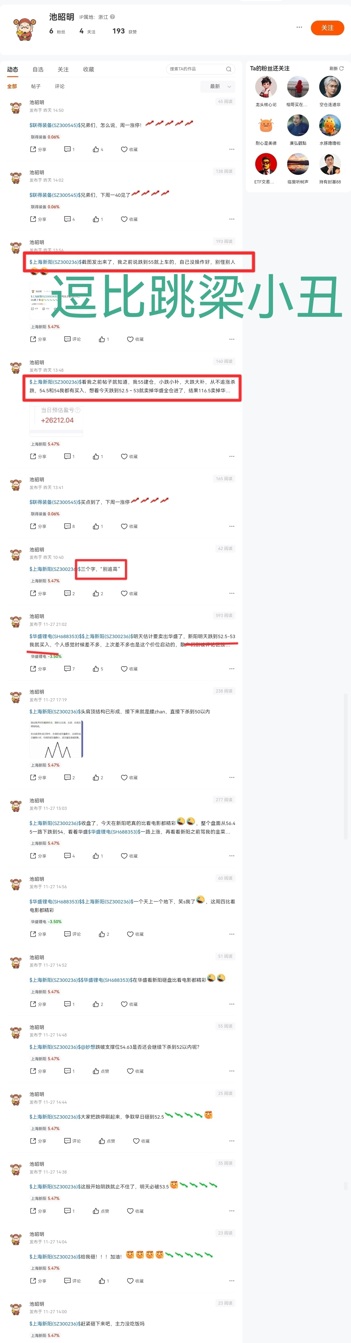 $上海新阳(SZ300236)$ $联得装备(SZ300545)$ @池昭明 周五上海新阳一根神奇大阳直接把跌了看跌的沼气池甩到了涨了看涨的联得装备吧,这只刷屏小丑苍蝇要能猜对上海新阳低点主力就是韭菜了