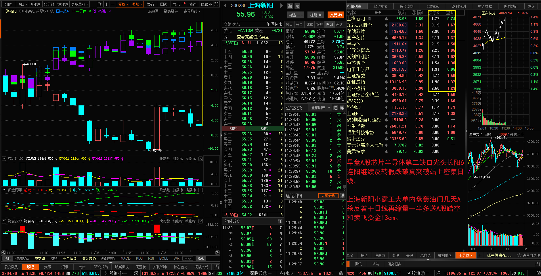 五天背离A股芯片半导体13cm,下午开盘上海新阳被踏空和卖飞资金抄底掏缸,上海新