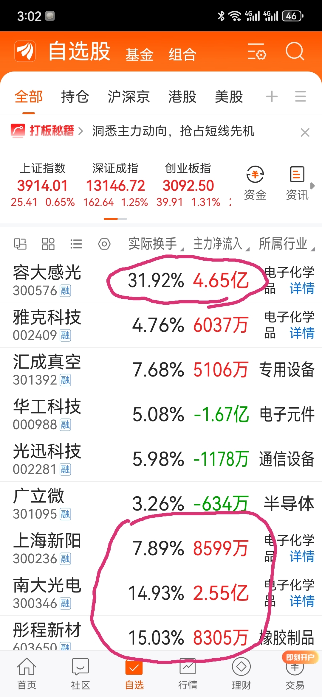 $上海新阳(SZ300236)$ 实际换手率是最重要的强势参考,容大感光虽然业绩偏弱,但实际换手率超过31%,南大很强,彤程新材竟然也超过15%。今天上海新阳算是跟风。