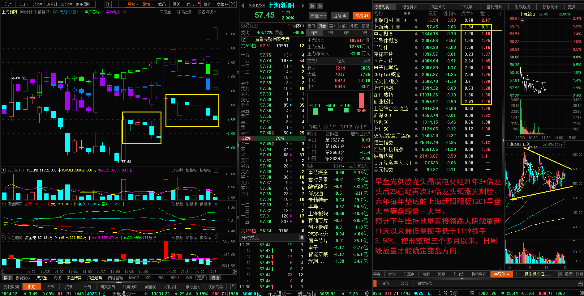 进入尾盘半小时,A股光刻胶三天爆量大涨,上海新阳两只黑乌鸦独立三个光刻胶跑输十几个点,今日缩量一半两只黑乌鸦,上海新阳不算光刻胶!憋不住了再分时放量日线倍量。