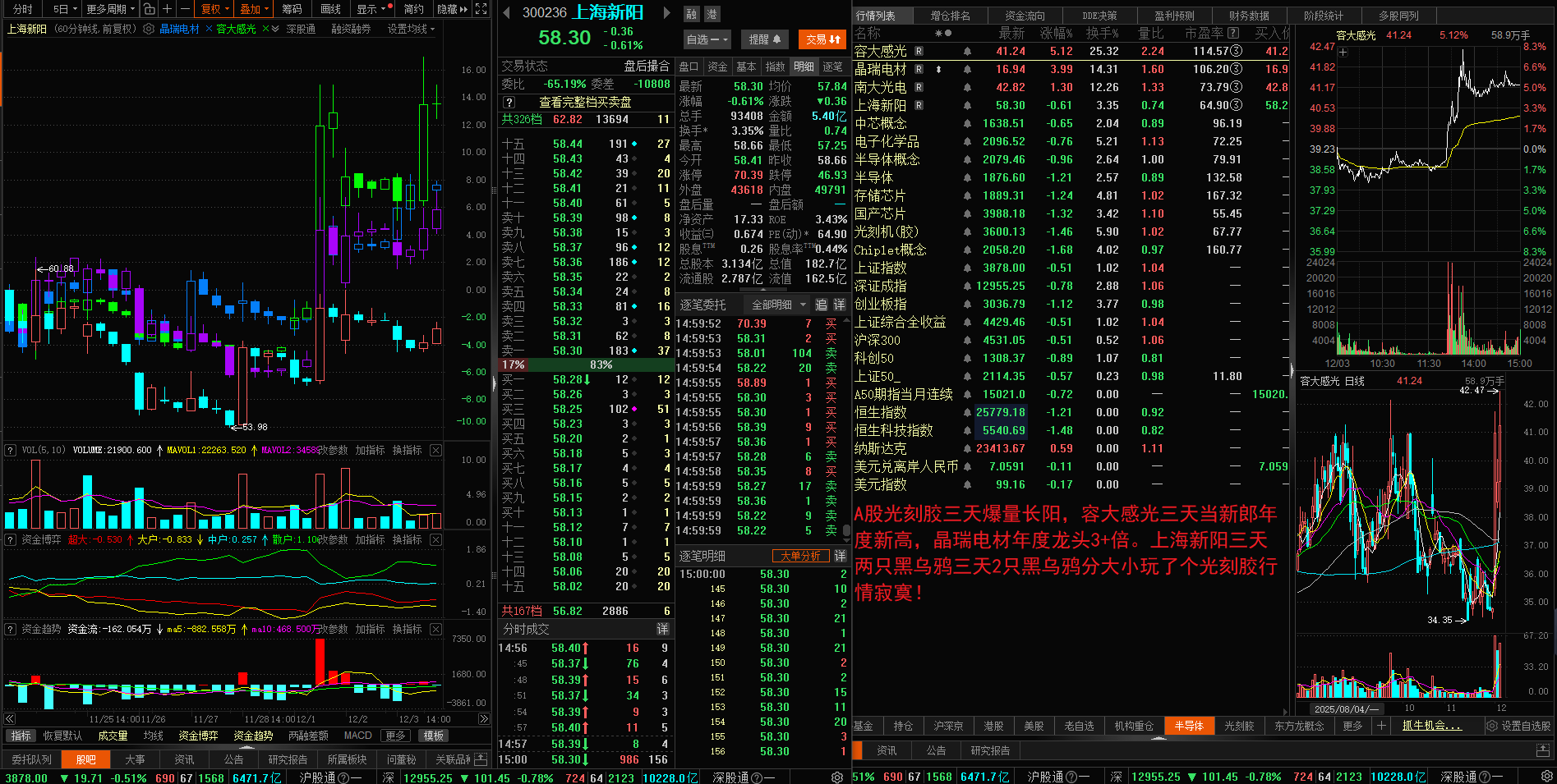 A股光刻胶三天爆量长阳,容大感光三天当新郎年度新高,晶瑞电材年度龙头3+倍。上海