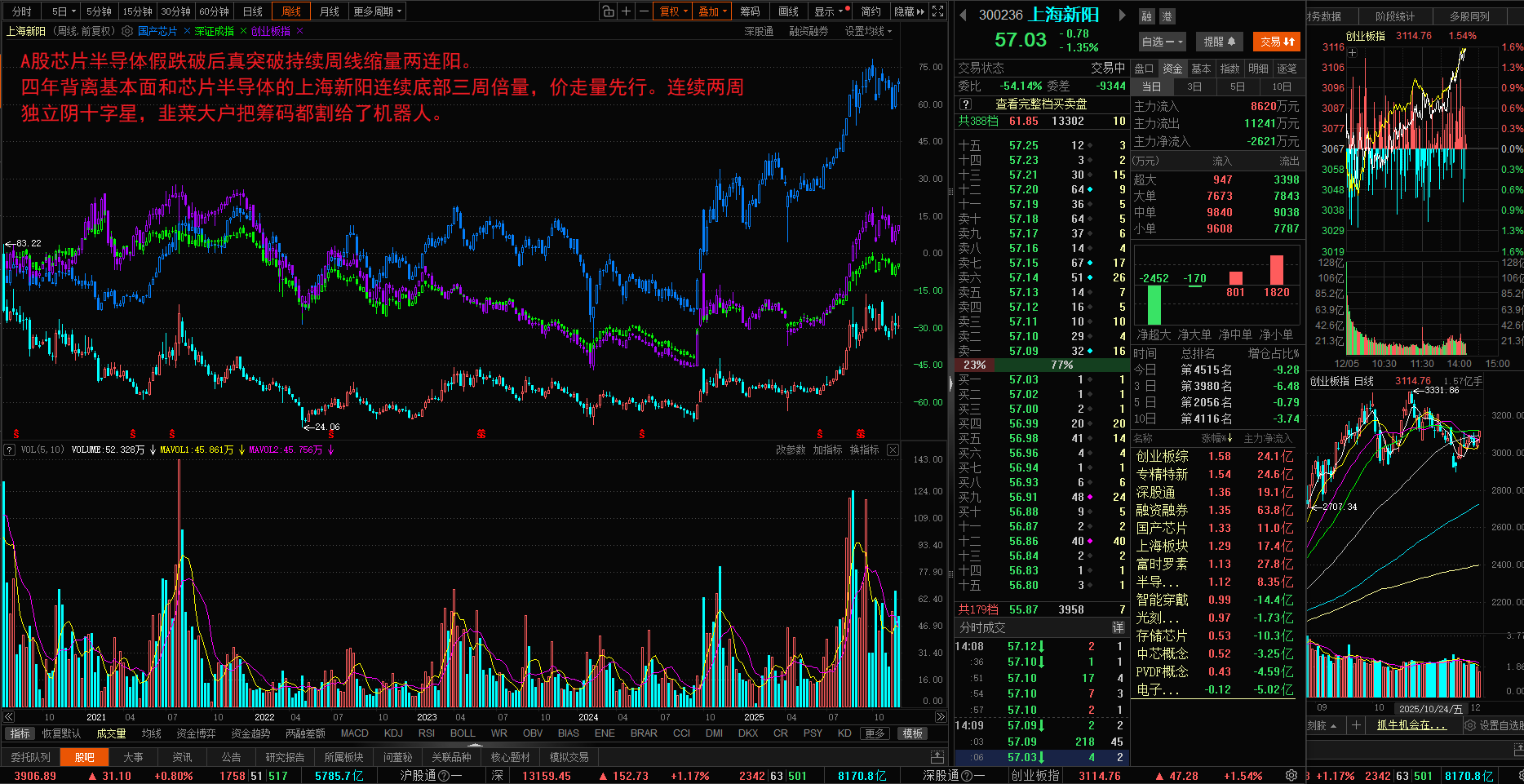 A股芯片半导体假跌破后真突破持续周线缩量两连阳。四年背离基本面和芯片半导体的上海