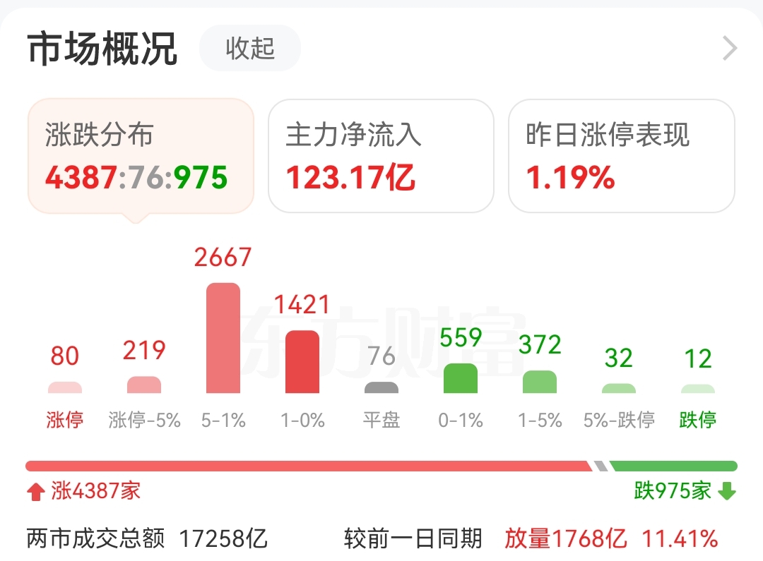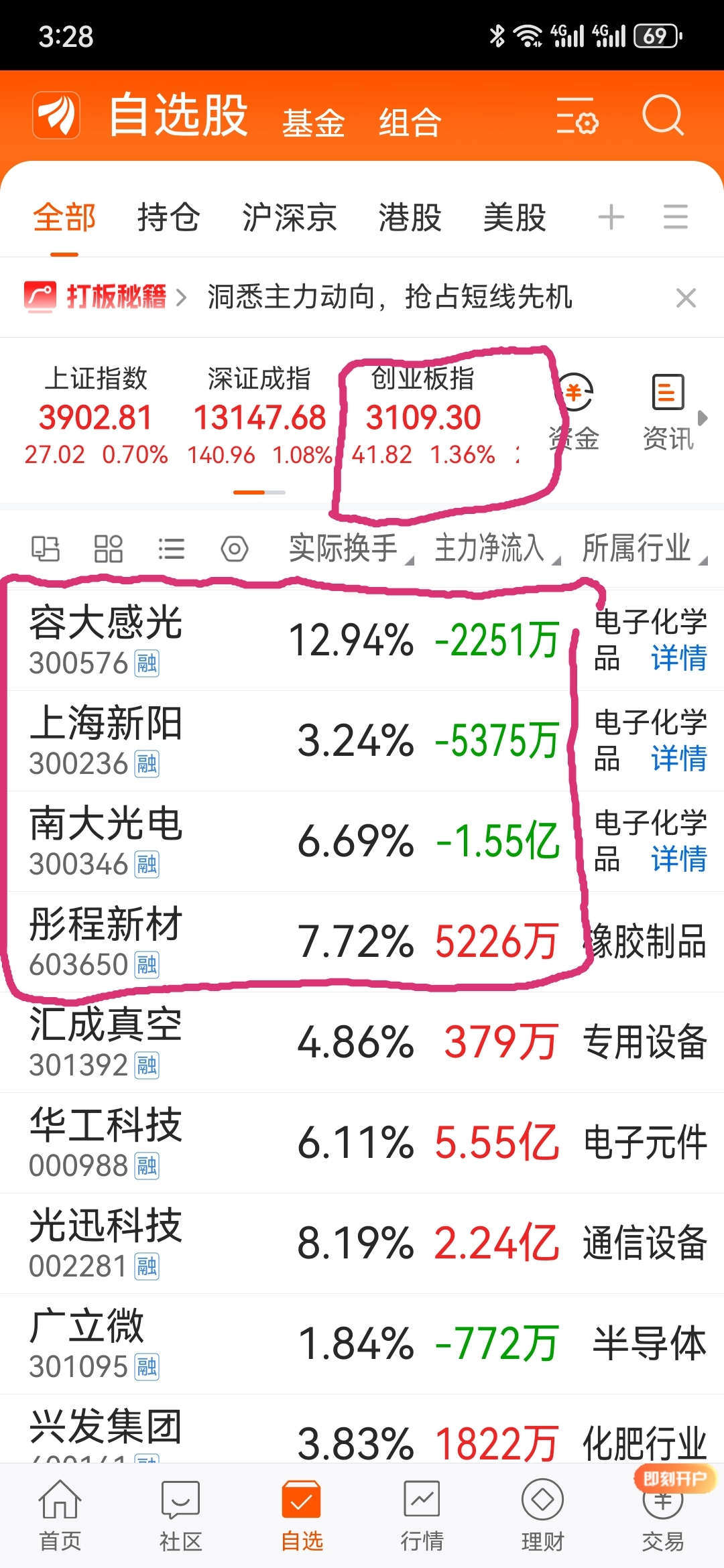 今天全市场上涨4387只,大盘成交量放量1768亿,创业板大涨..。上海新阳不涨