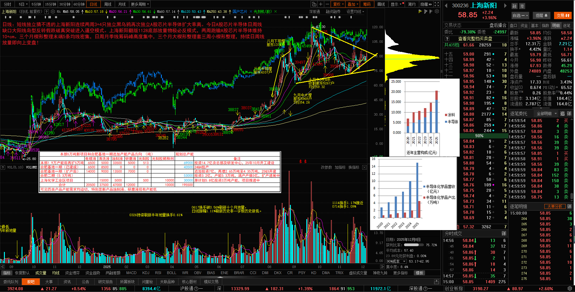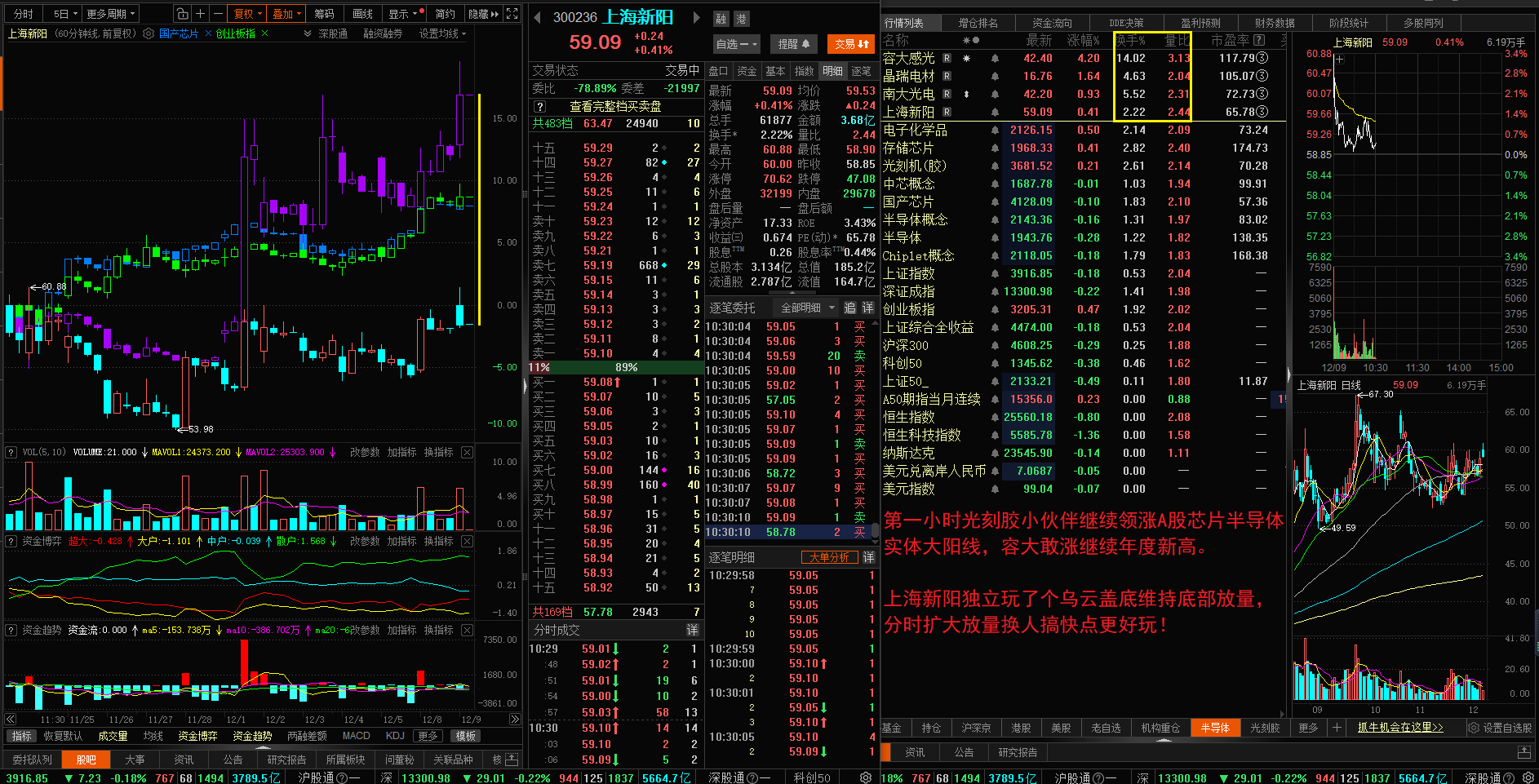 第二小时A股芯片半导体继续向上,上海新阳小霸王中大单继续刷拖拉机连压按着要补缺分