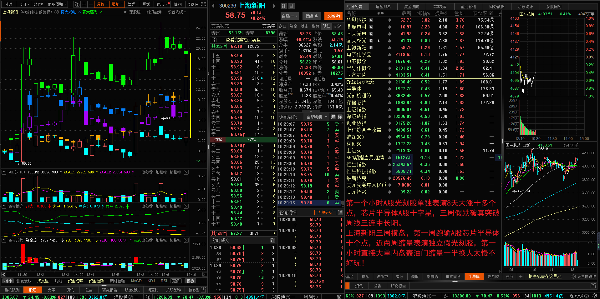 第一个小时A股光刻胶单独表演8天大涨十多个点,芯片半导体A股十字星,三周假跌破真