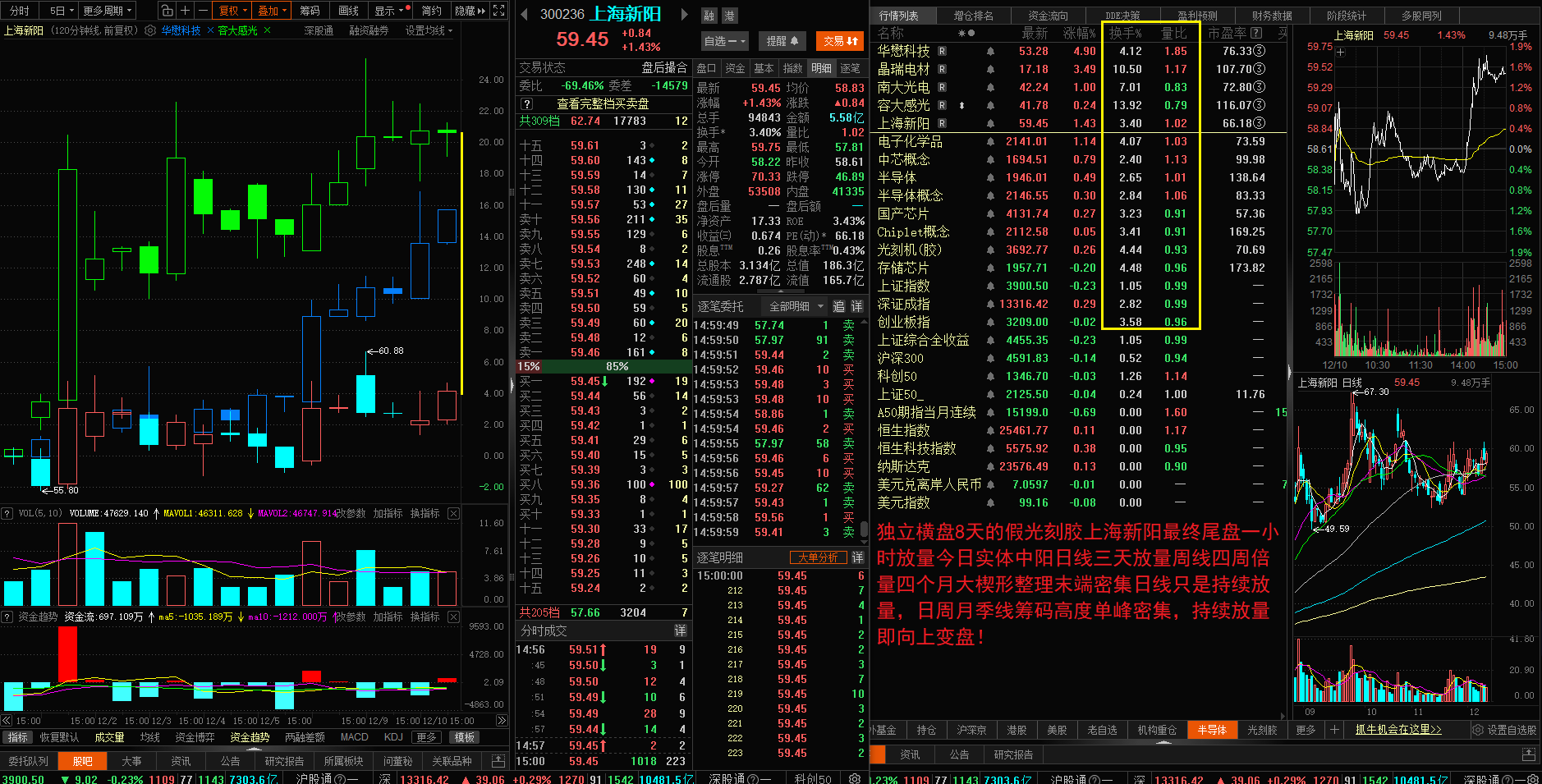 独立横盘8天的假光刻胶上海新阳最终尾盘一小时放量今日实体中阳日线三天放量周线四周