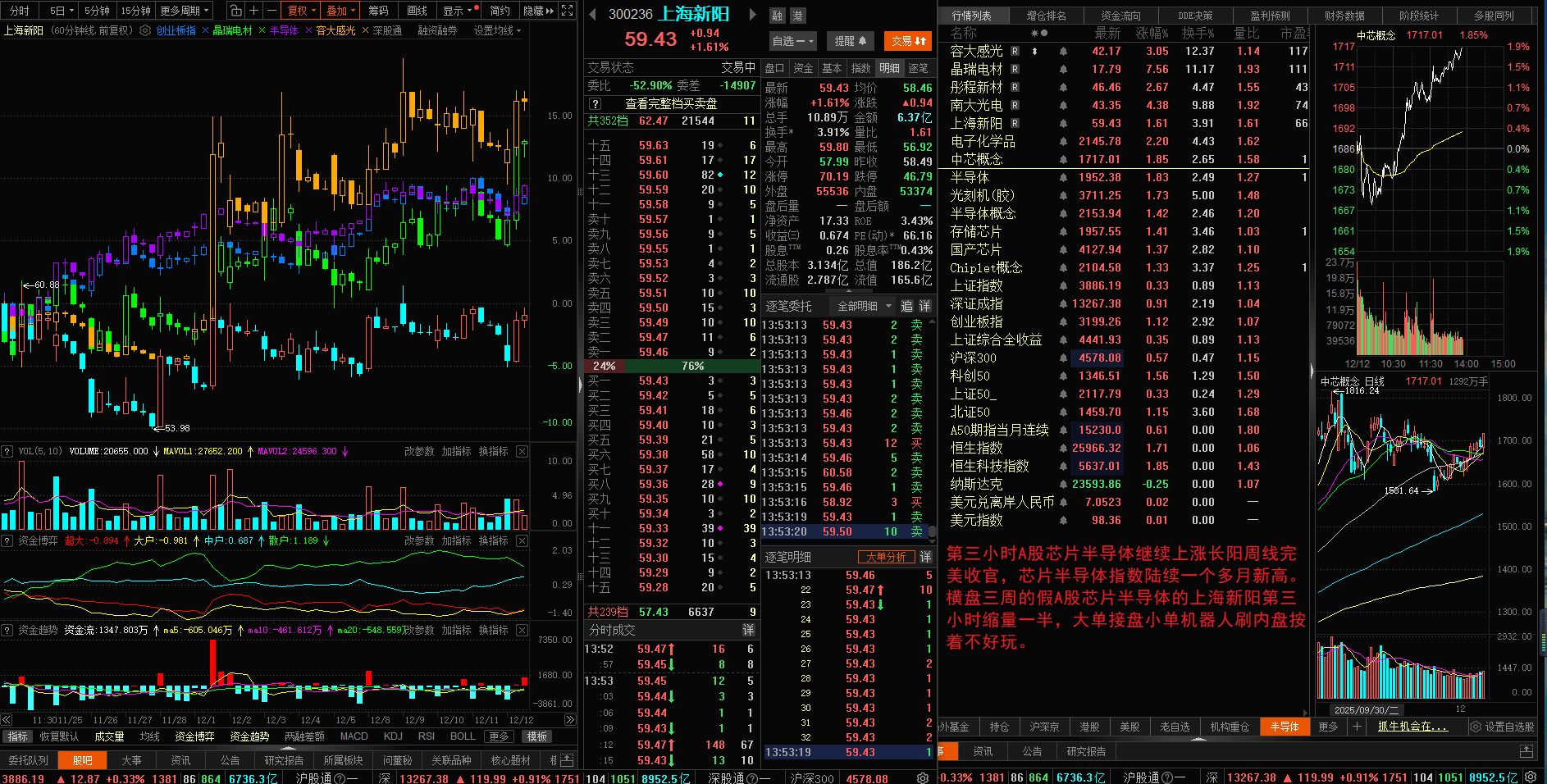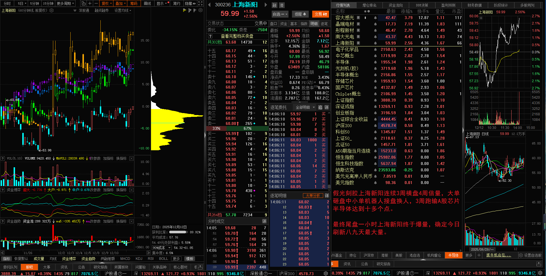 假光刻胶上海新阳连续3周横盘4周倍量,大单砸盘中小单机器人接盘换人,3周跑输A股