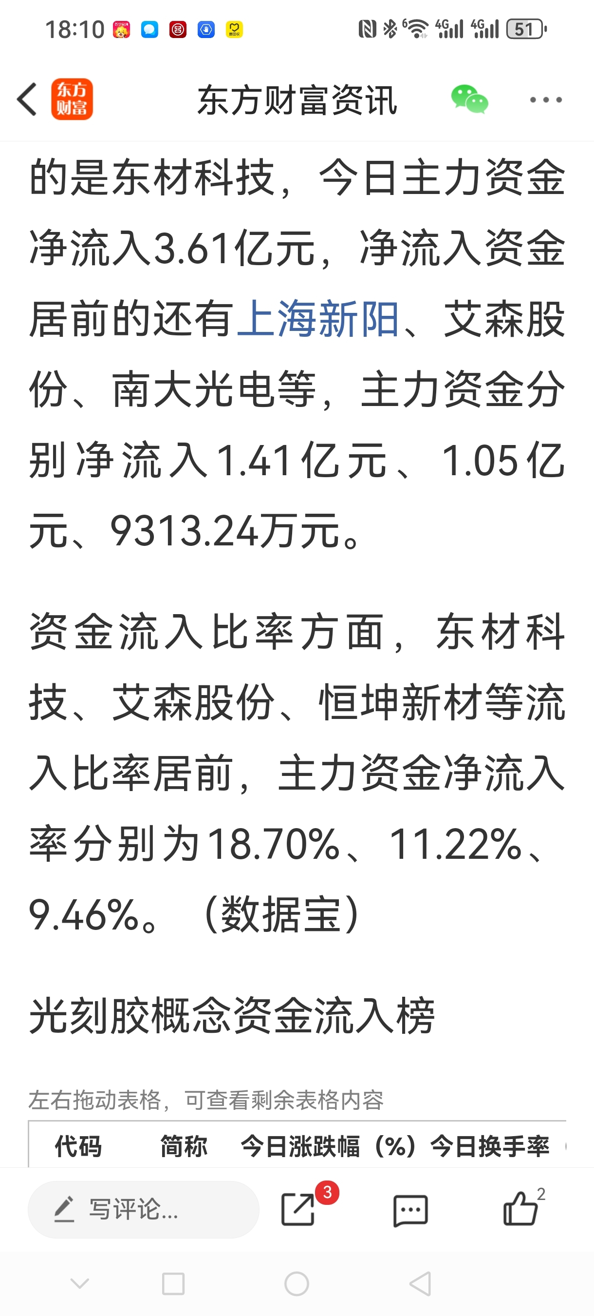 $上海新阳(SZ300236)$ 光刻胶板块,今日主力净流入第1名,上海新阳