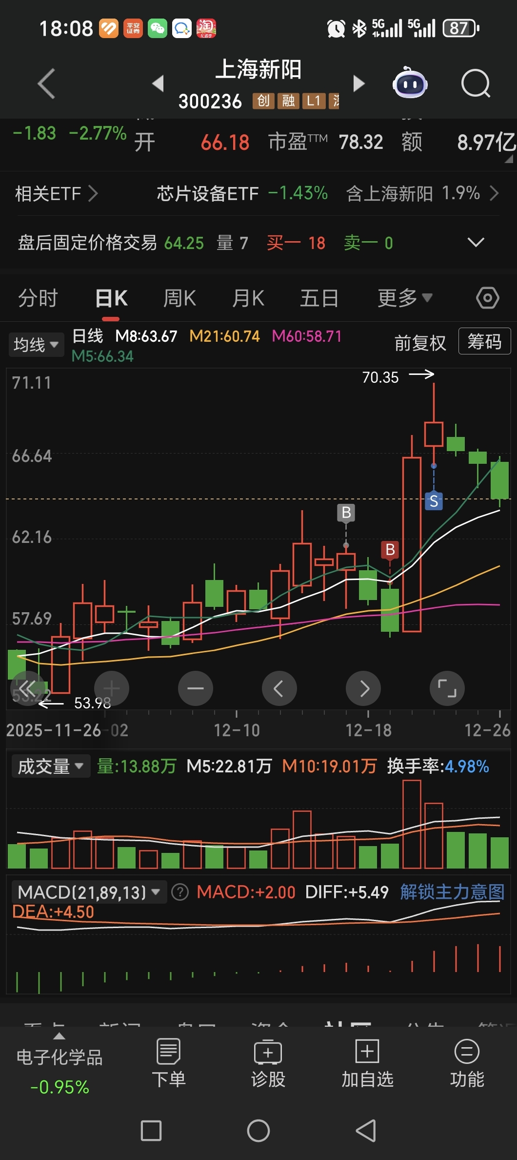 $上海新阳(SZ300236)$ 高点清仓出来了,现在我觉得还得再等等再进