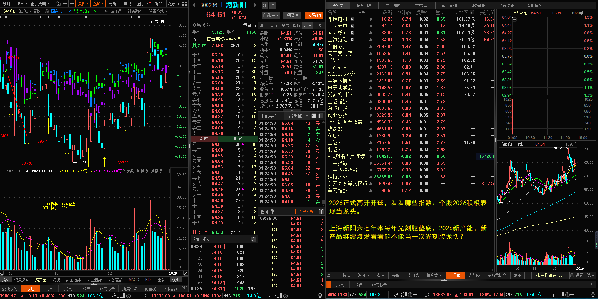 2026第一个15分钟A股芯片半导体带队高开高走长阳开门红!上海新阳A杀四只黑乌