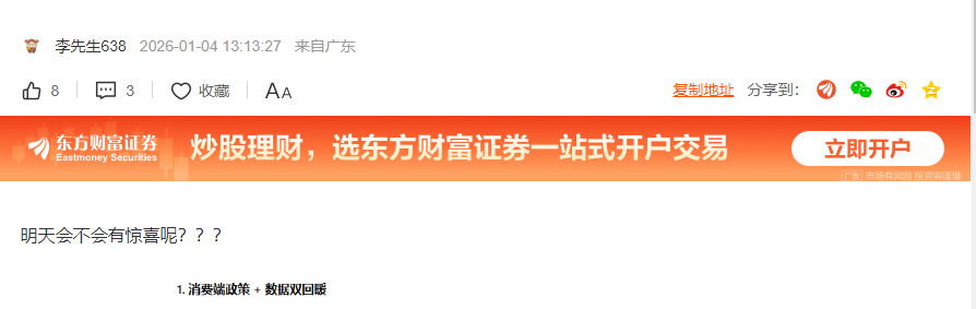 温馨提示: 1.根据《证券法》规定,禁止编造、传播虚假信息或者误导性信息,扰乱证券市场;2.用户在本社区发表的所有资料、言论等仅代表个人观点,与本网站立场无关,不对您构成任何投资建议。用户应基于自己的独立判断,自行决定证券投资并承担相应风险。《东方财富社区管理规定》