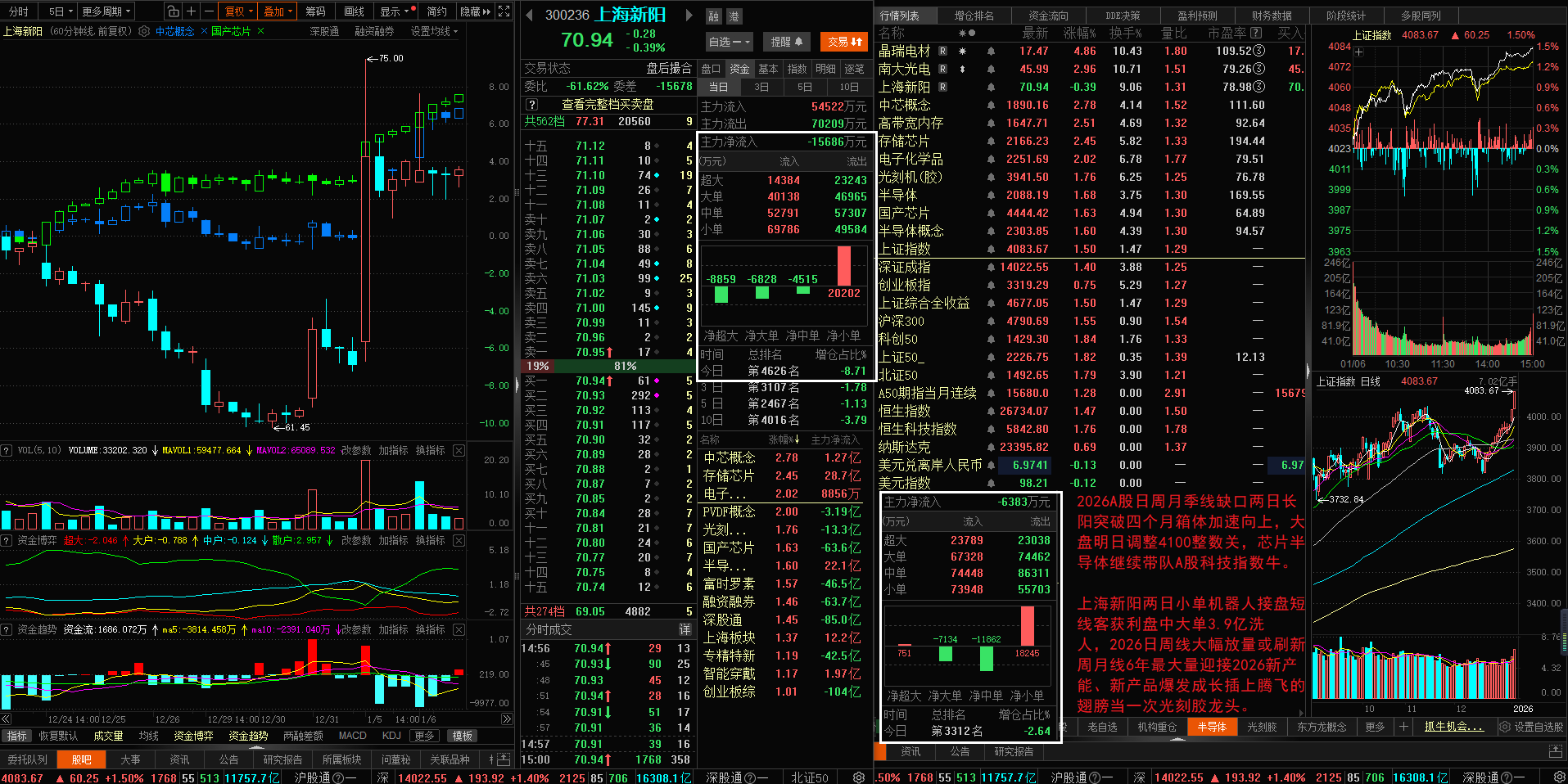 2026A股日周月季线缺口两日长阳突破四个月箱体加速向上,大盘明日调整4100整