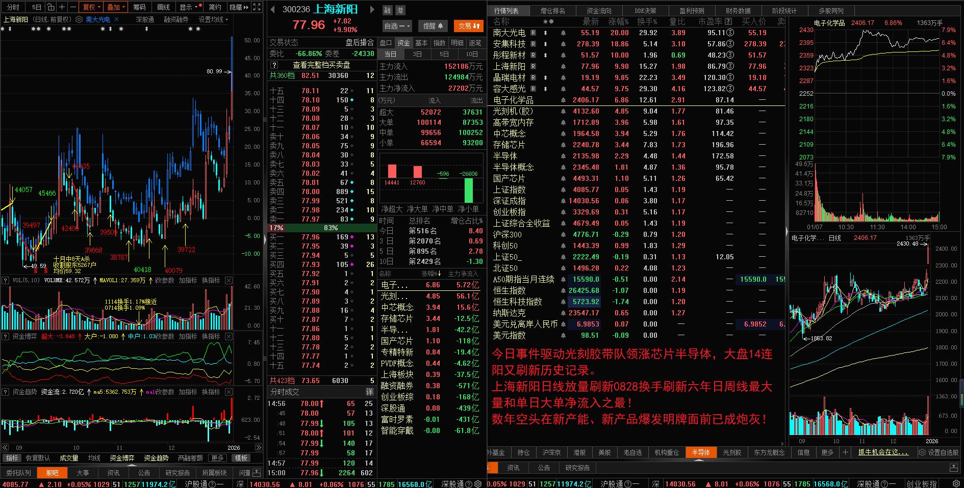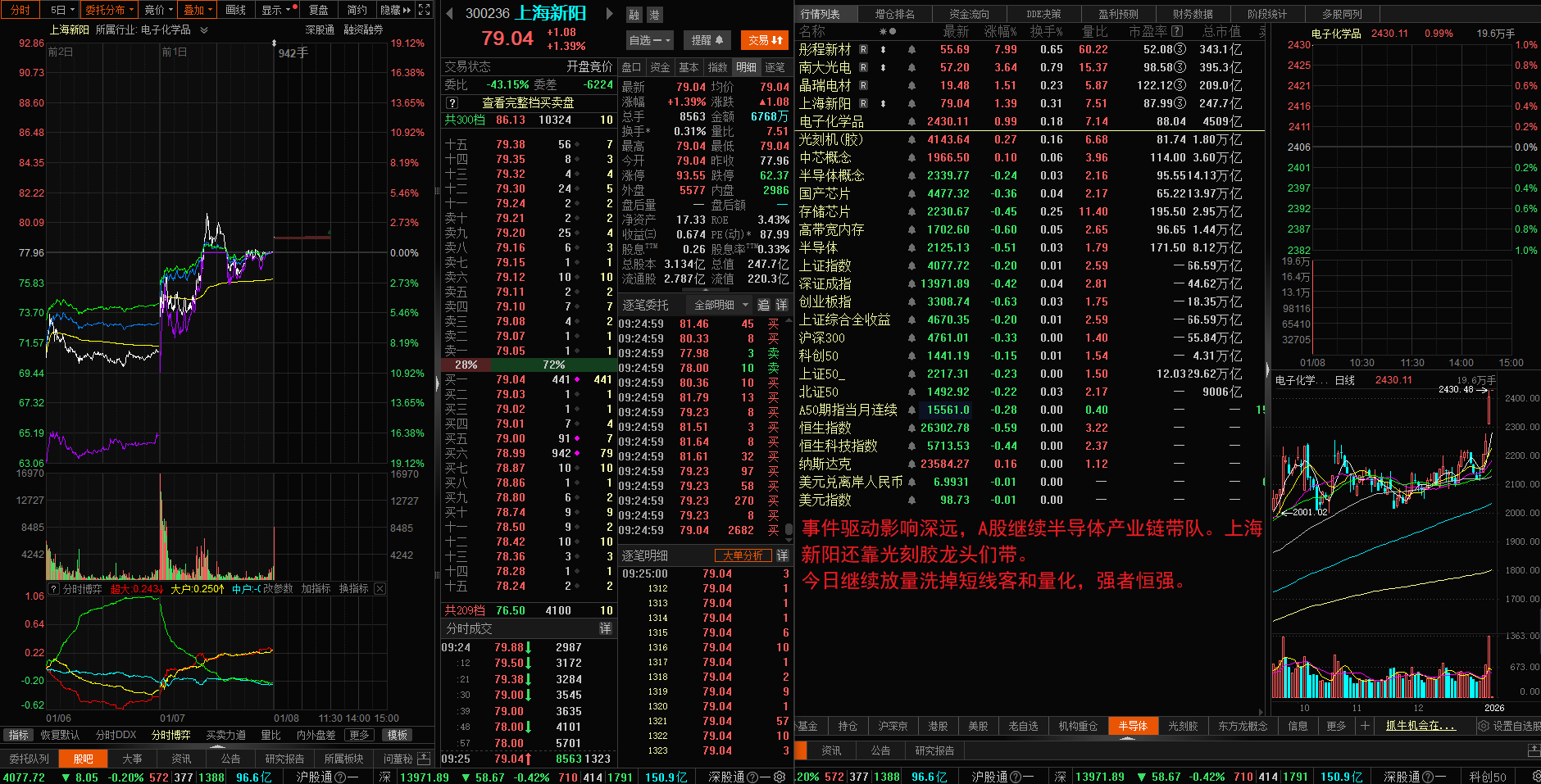 事件驱动影响深远,A股继续半导体产业链带队。上海新阳还靠光刻胶龙头们带。今日继续放量洗掉短线客和量化,强者恒强。