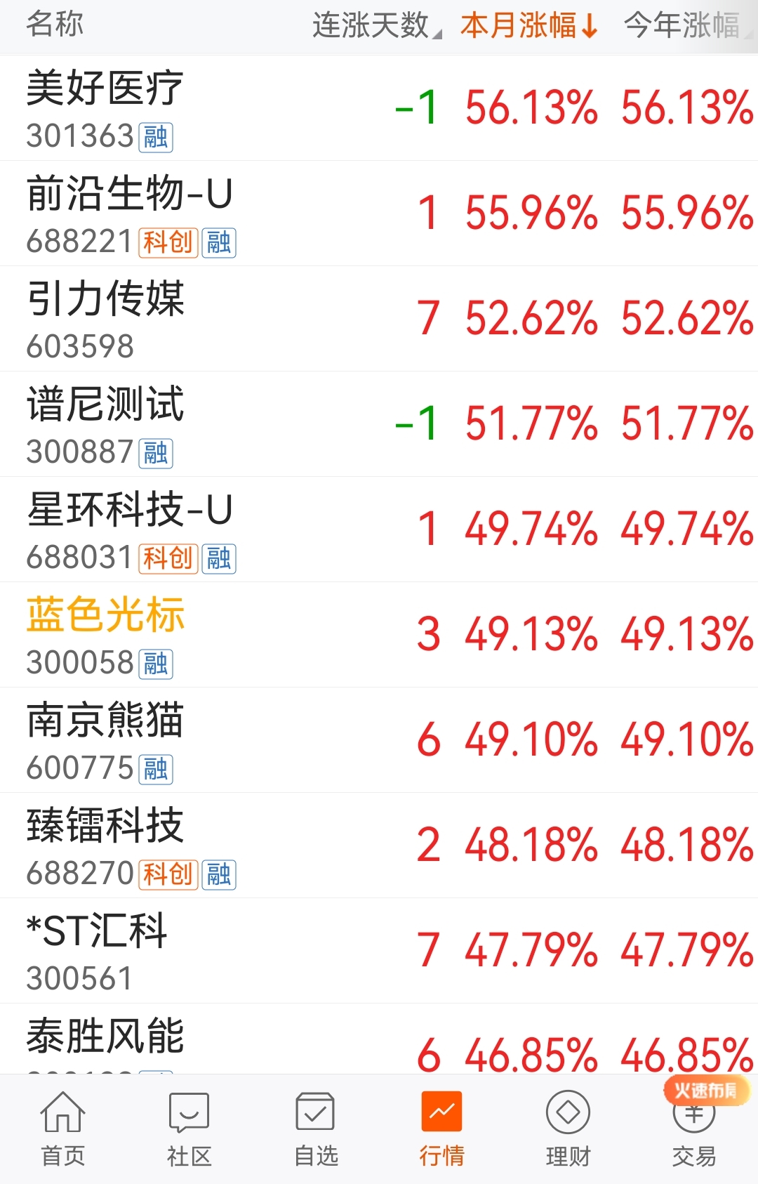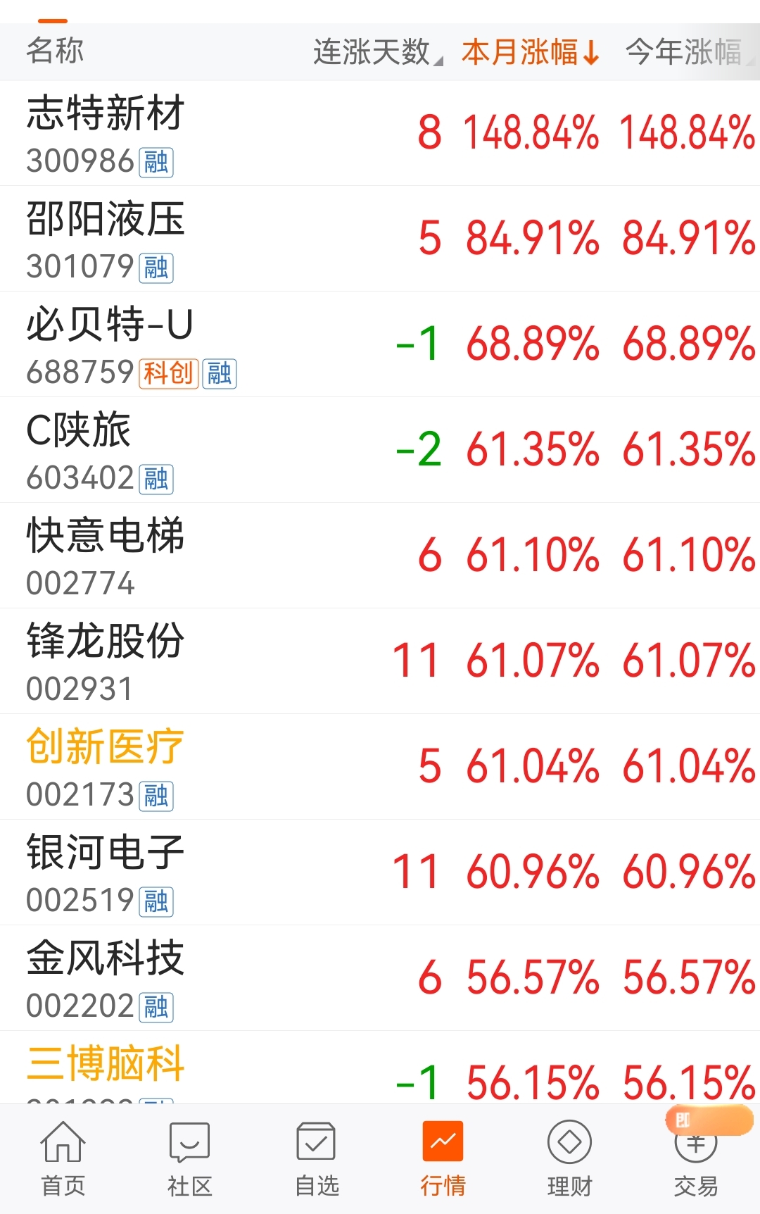 本周(也是本月前9天)个股涨幅排名,南大光电的36%尚且微不足道,第一名近1.5
