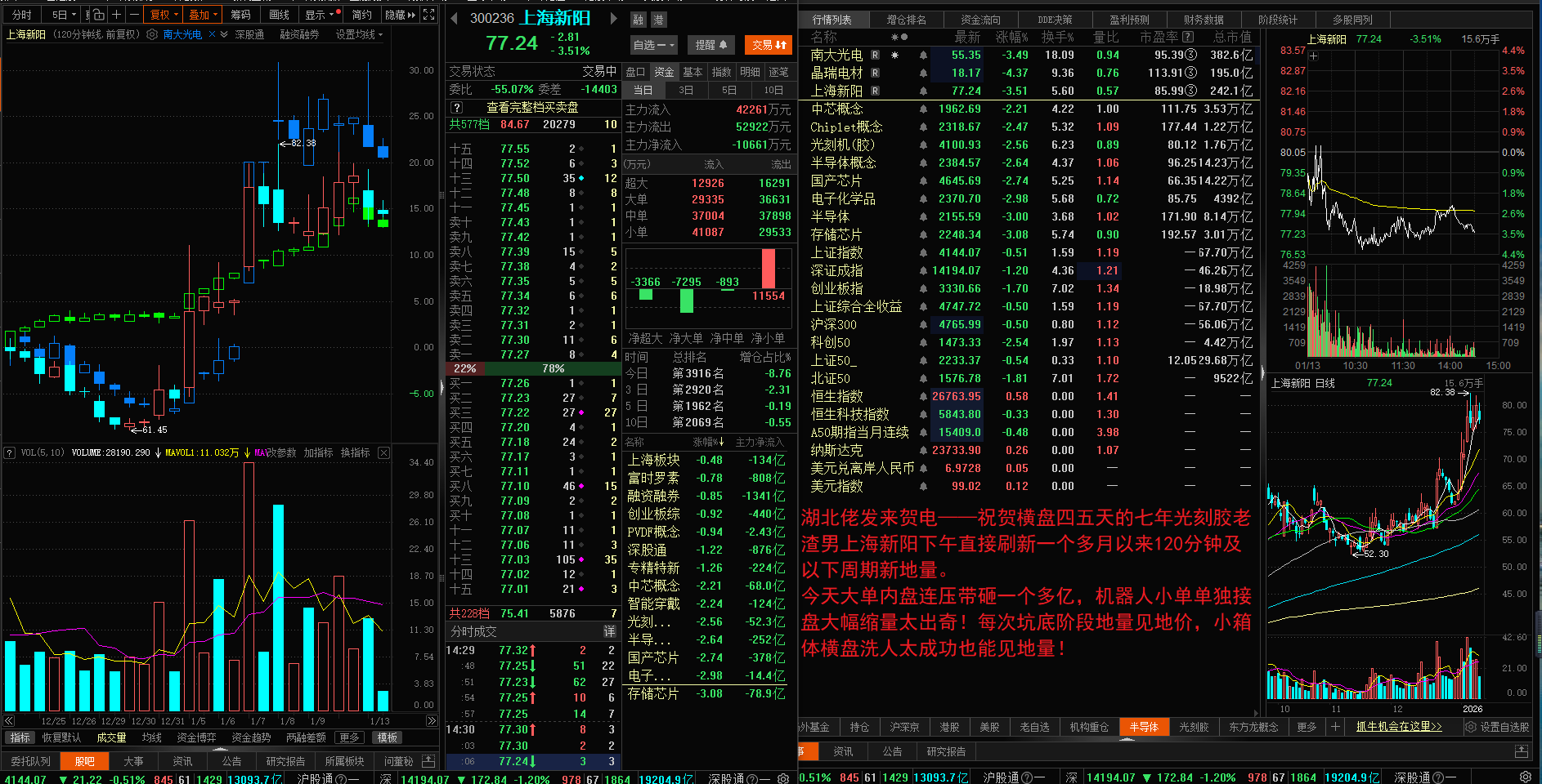 七年老渣男上海新阳反向指标大单内盘轰油门昨日缩量四成,缩量一半,直接刷新1218以来新地量。