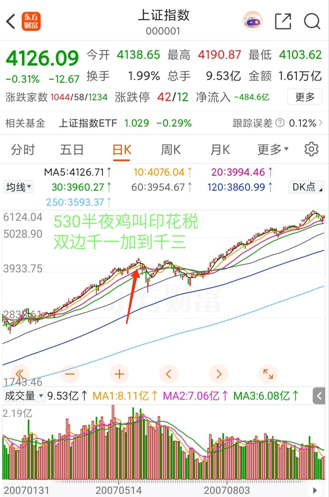 A股历史著名的半夜鸡叫530把双边印花税从千1暴增到千3,也没止住大盘冲锋到6124历史最高点