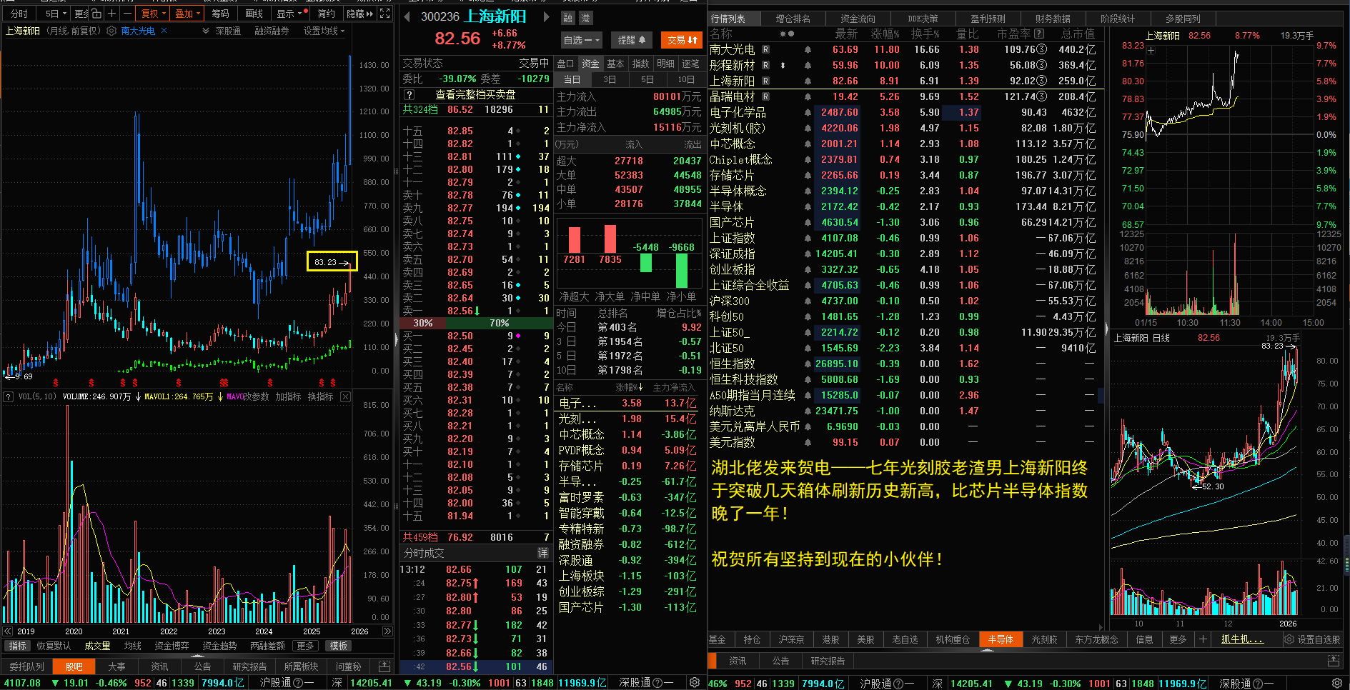 湖北佬发来贺电——七年光刻胶老渣男上海新阳终于突破几天箱体刷新历史新高,比芯片半导体指数晚了一年!