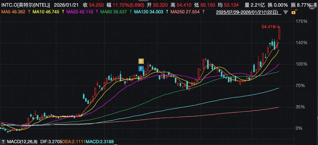 截至1月21日,英特尔股价创下近四年新高,年内涨幅超44%;AMD延续连续上涨态势;A股市场中,龙芯中科与海光信息分别录得20%涨停及单日涨幅超13%。这一行情背后,反映的是市场对“算力税”传导逻辑的重新定价,继GPU因AI训练需求大涨之后,CPU正在成为算力成本上涨的第二波承载者。