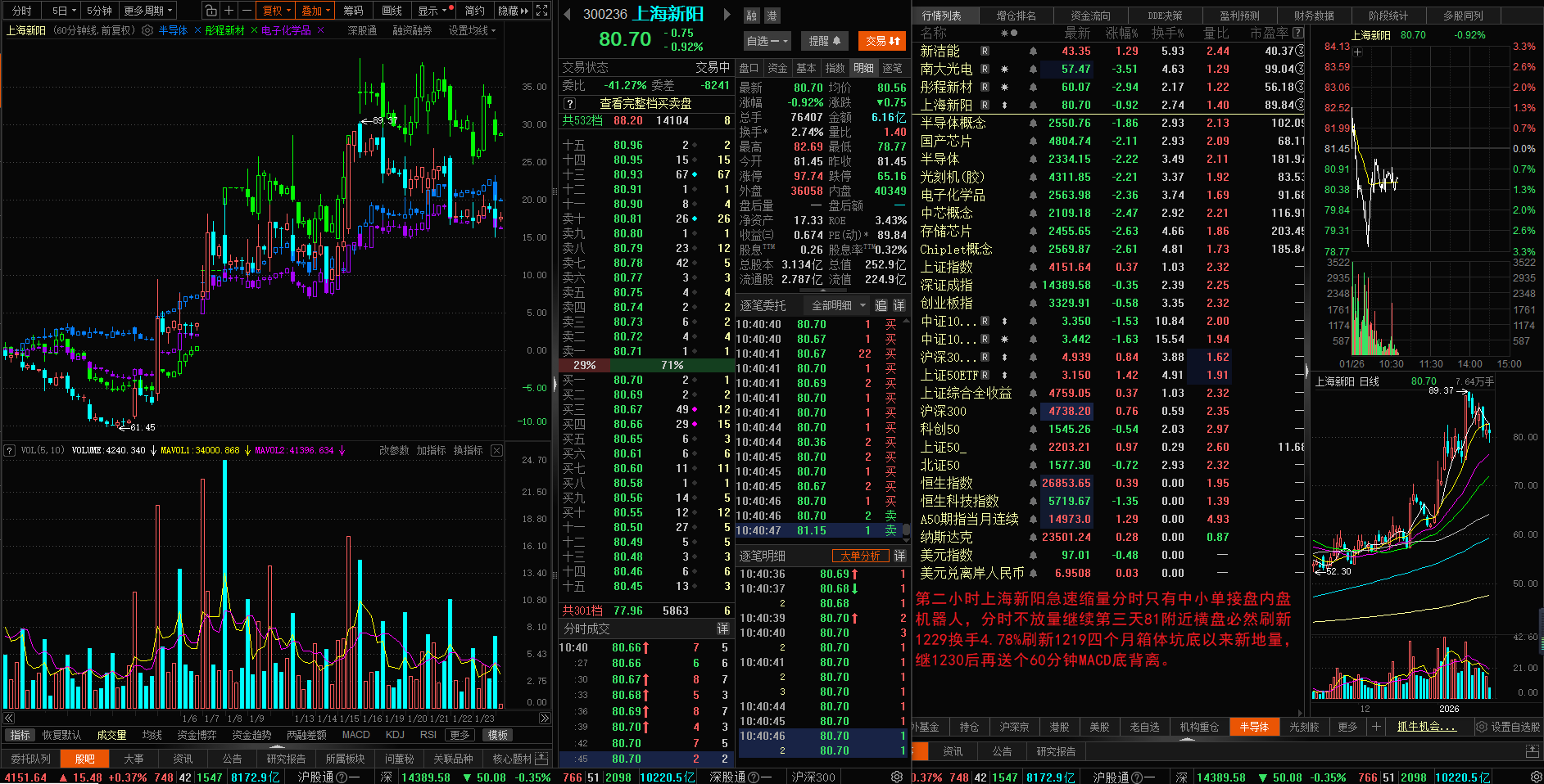 第二小时上海新阳急速缩量分时只有中小单接盘内盘机器人,分时不放量继续第三天81附