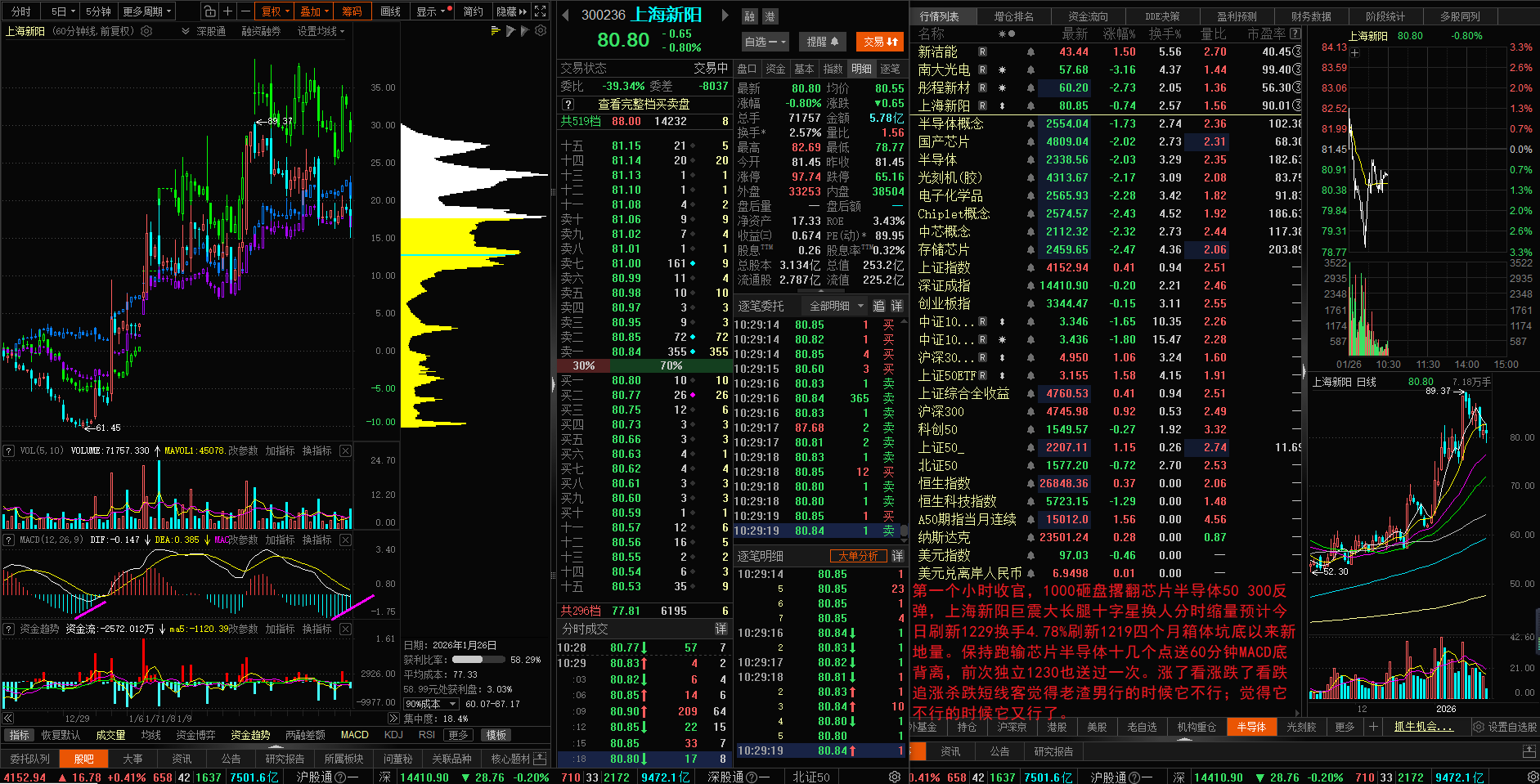 第二小时上海新阳急速缩量分时只有中小单接盘内盘机器人,分时不放量继续第三天81附近横盘必然刷新1229换手4.78%刷新1219四个月箱体坑底以来新地量,继1230后再送个60分钟MACD底背离。