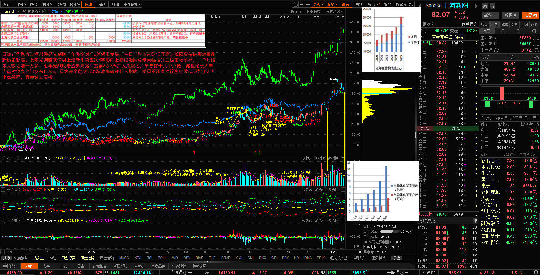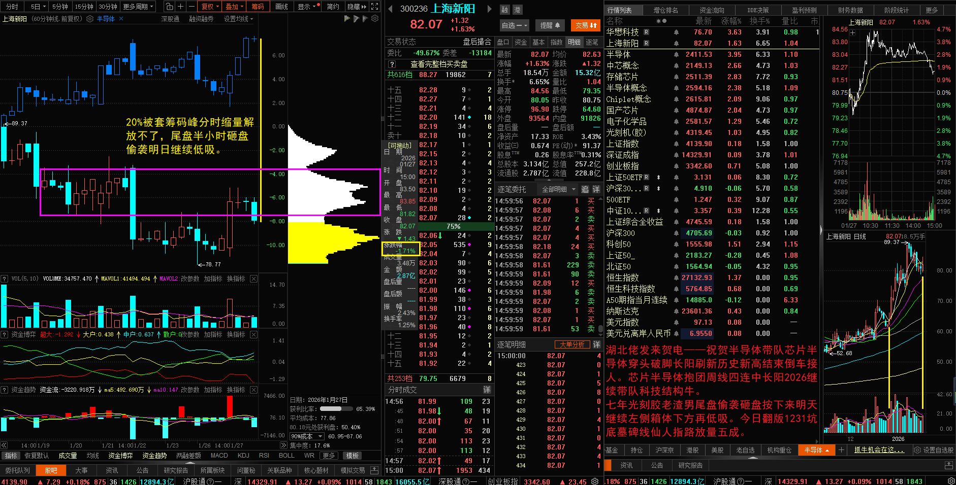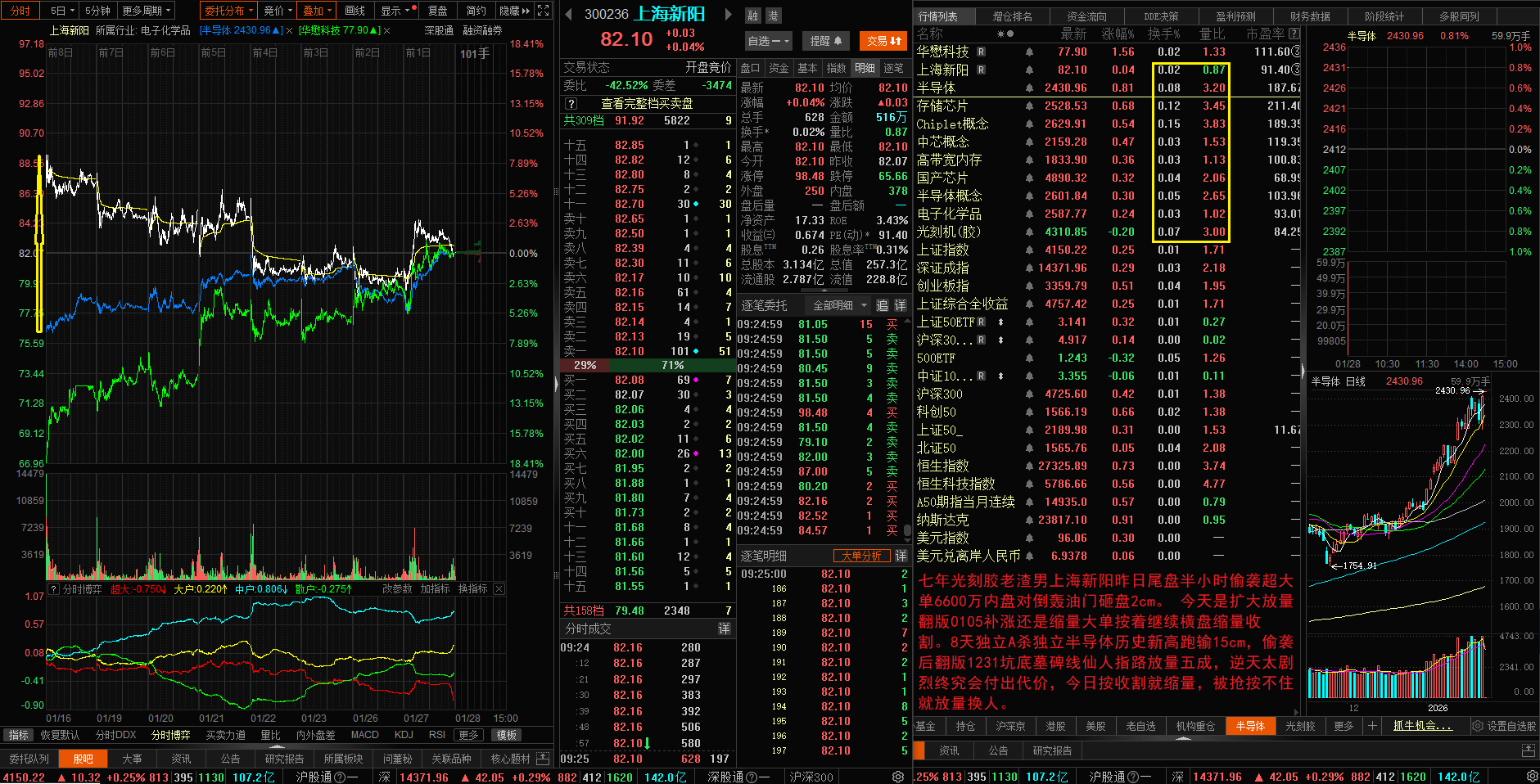 七年光刻胶老渣男上海新阳昨日尾盘半小时偷袭超大单6600万内盘对倒轰油门砸盘2c