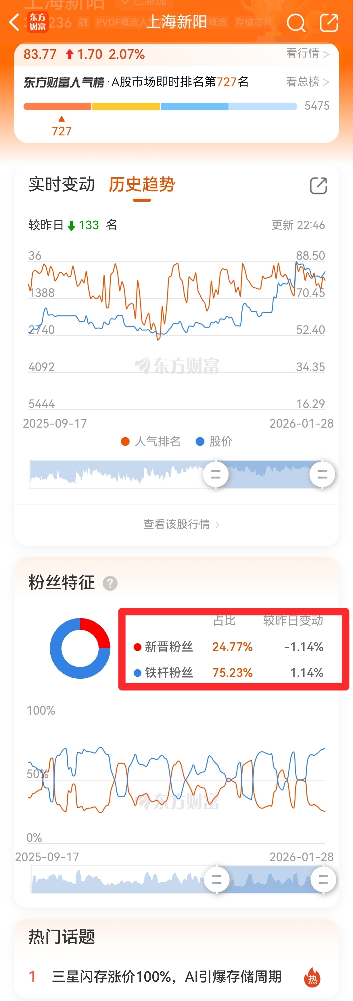 哦豁!七年光刻胶老渣男上海新阳的新粉占比低于四分之一了,四个多月新低呀!短线客收