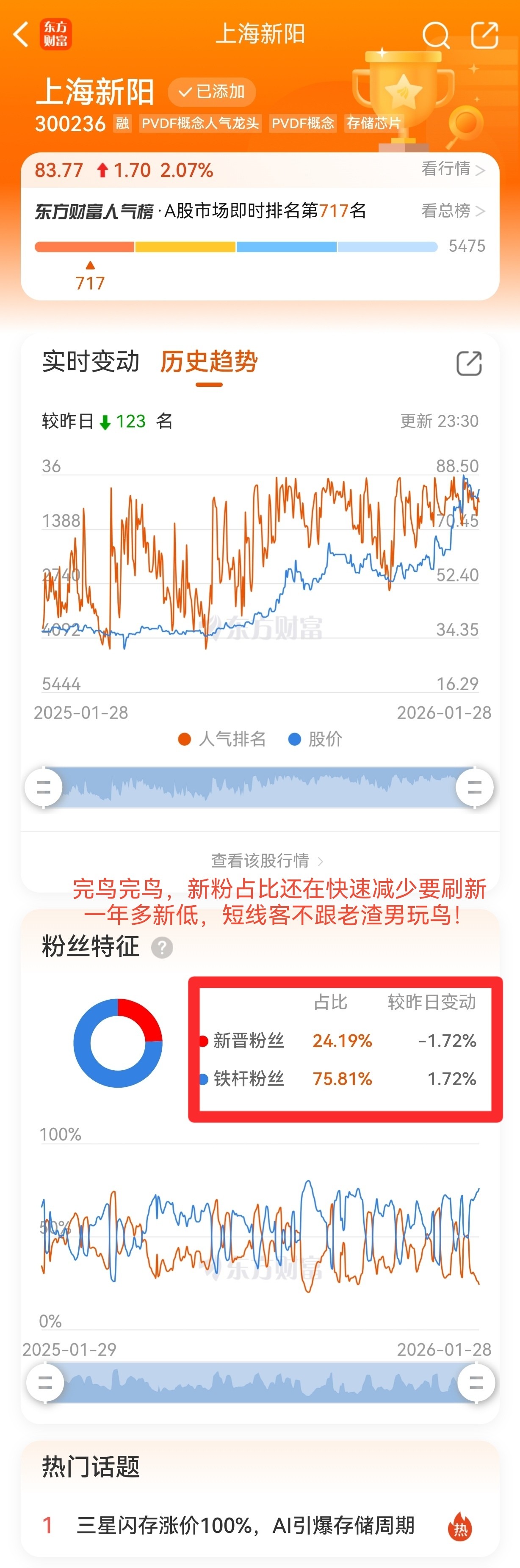 完鸟完鸟,新粉占比还在快速减少要刷新一年多新低,短线客不跟老渣男玩鸟!